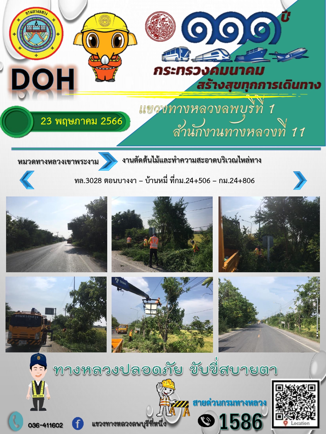 ทางหลวงปลอดภัยขับขี่สบายตา แขวงทางหลวงลพบุรีที่ 1 ประจำวันที่ 23 พฤษภาคม 2566