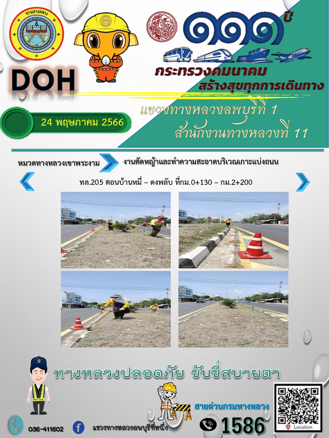 ทางหลวงปลอดภัยขับขี่สบายตา แขวงทางหลวงลพบุรีที่ 1 ประจำวันที่ 24 พฤษภาคม 2566