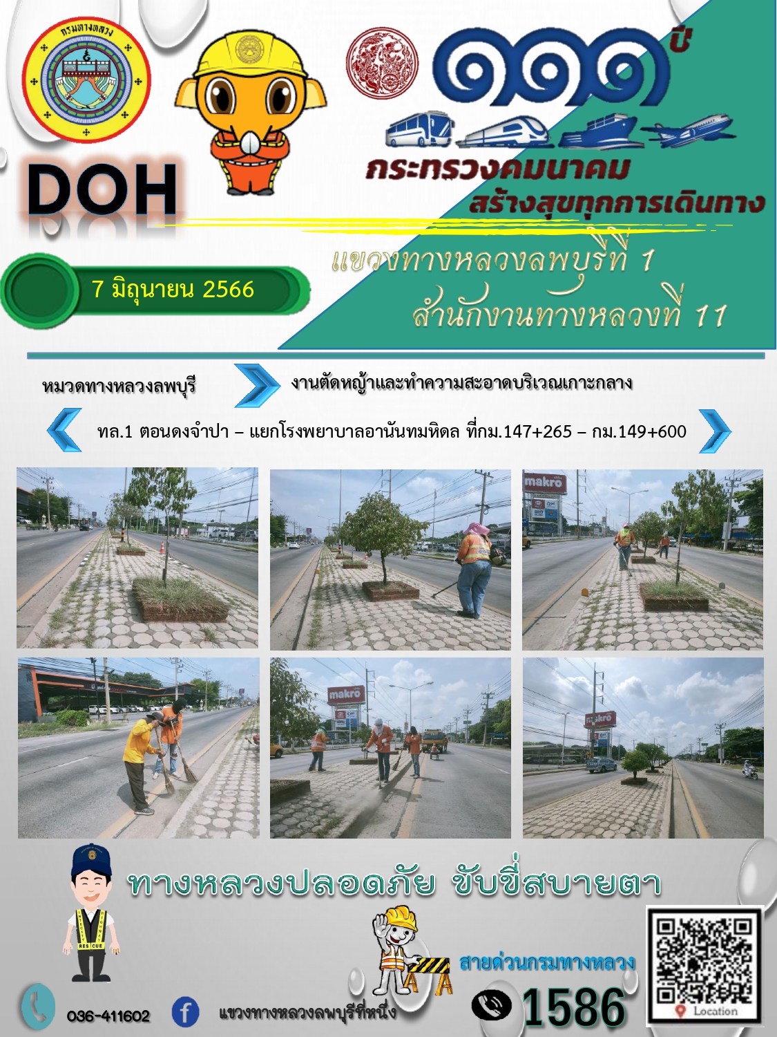 ทางหลวงปลอดภัยขับขี่สบายตา แขวงทางหลวงลพบุรีที่ 1 ประจำวันที่ 7 มิถุนายน 2566