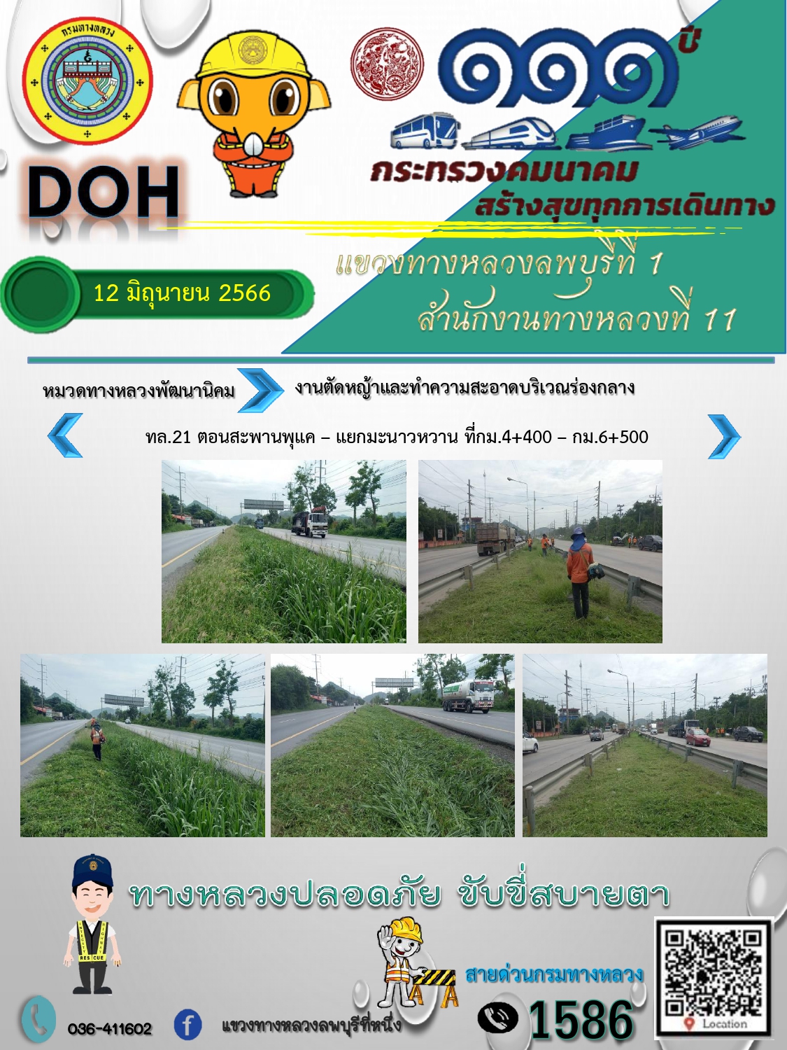 ทางหลวงปลอดภัยขับขี่สบายตา แขวงทางหลวงลพบุรีที่ 1 ประจำวันที่ 12 มิถุนายน 2566