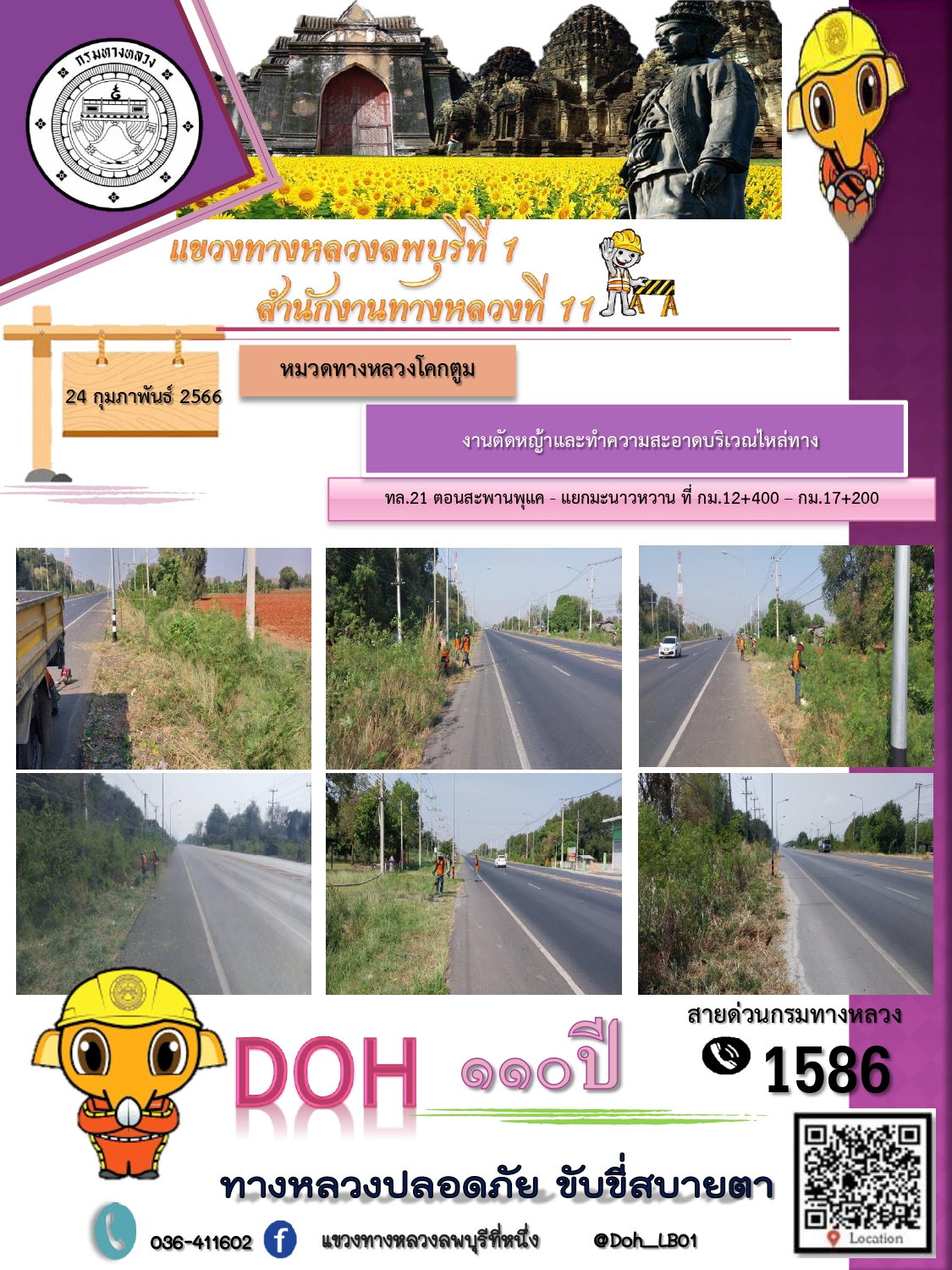 ทางหลวงปลอดภัยขับขี่สบายตา แขวงทางหลวงลพบุรีที่ 1 ประจำวันที่ 24 กุมภาพันธ์ 2566