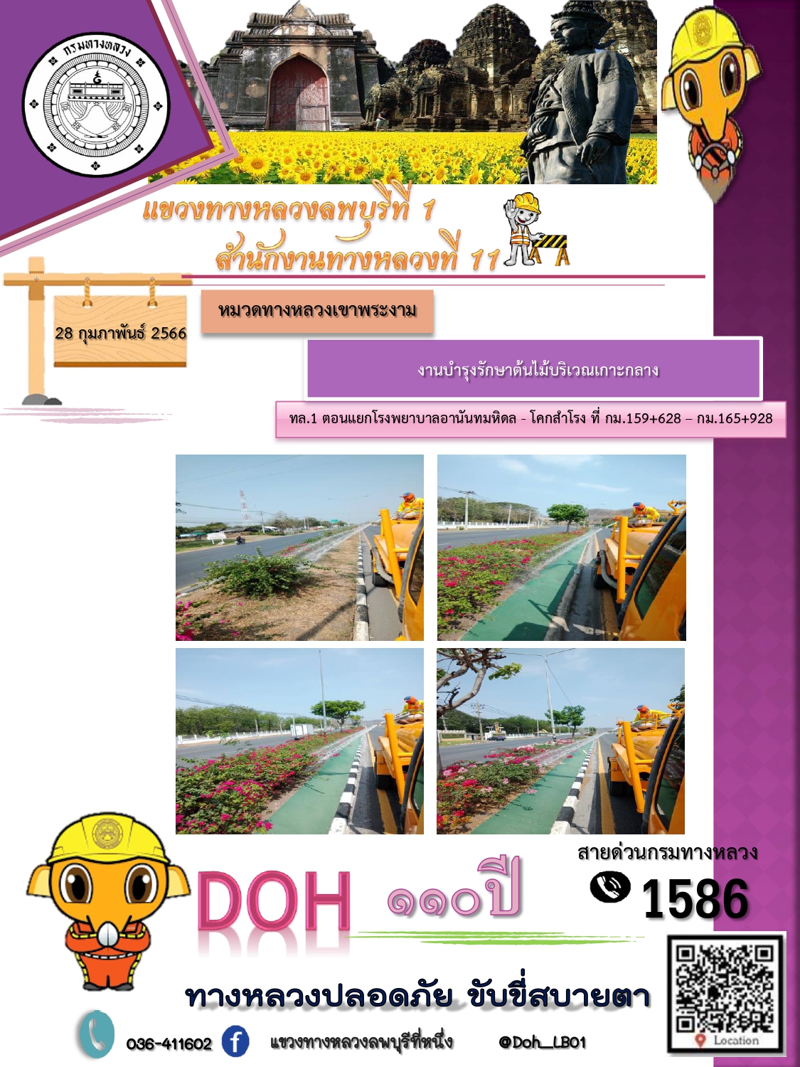 ทางหลวงปลอดภัยขับขี่สบายตา แขวงทางหลวงลพบุรีที่ 1 ประจำวันที่ 28 กุมภาพันธ์ 2566