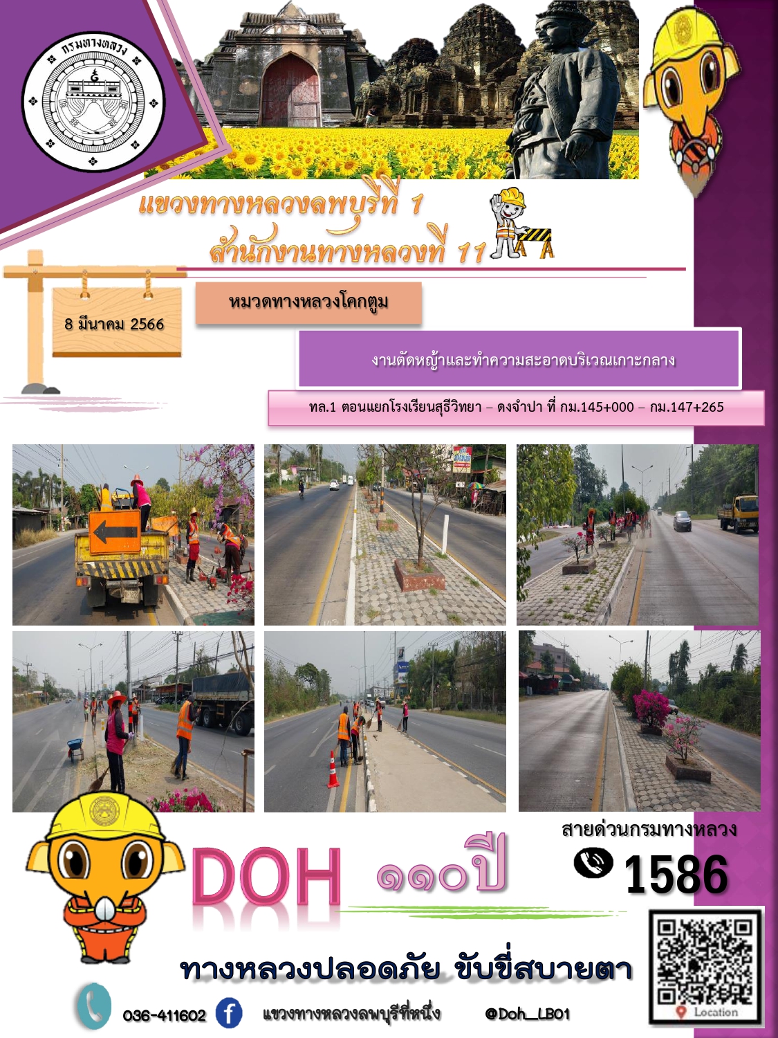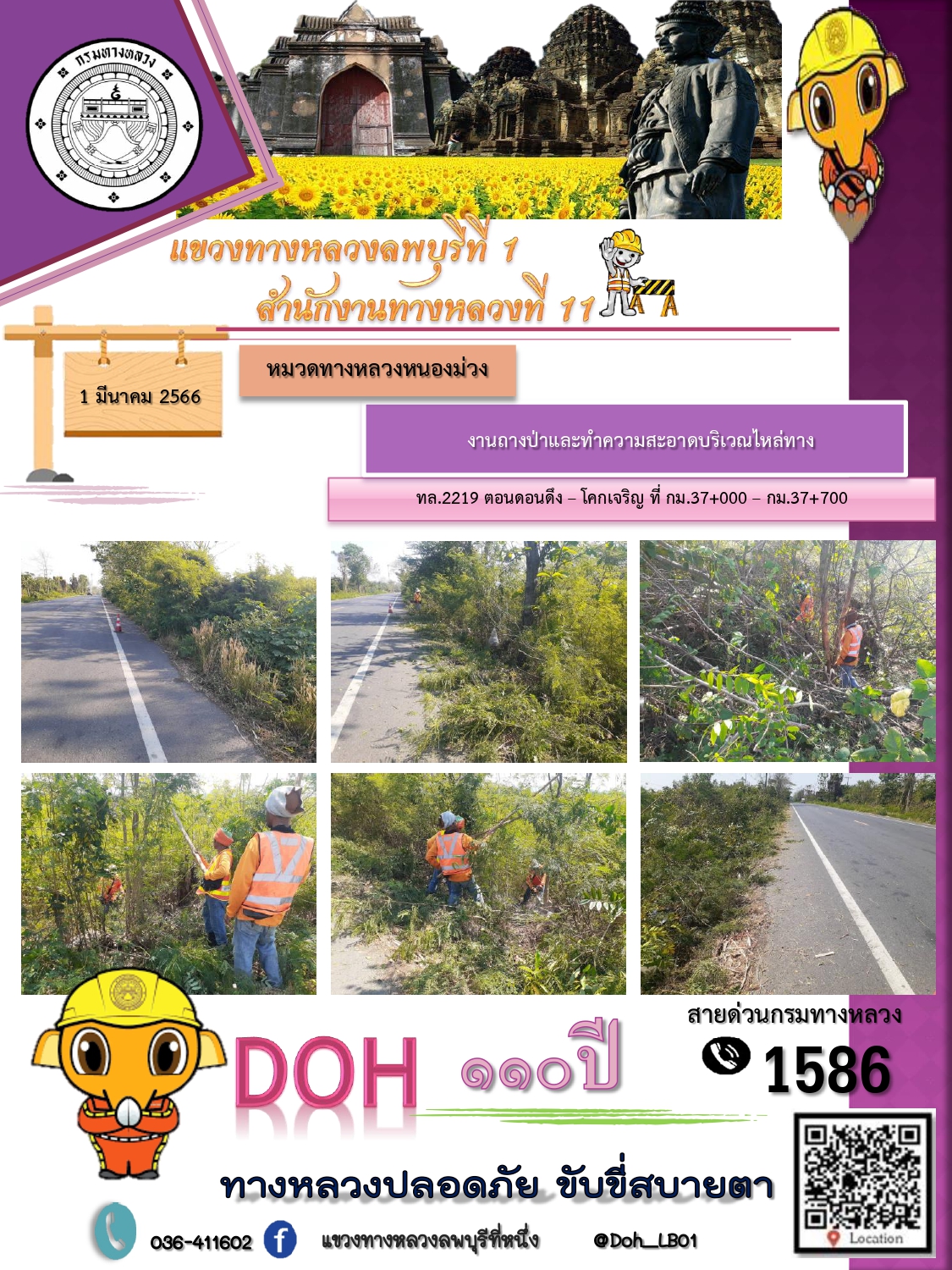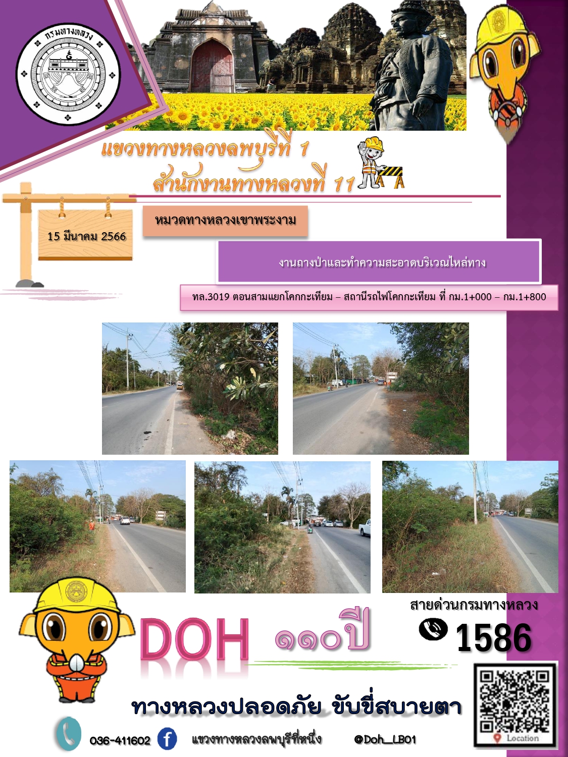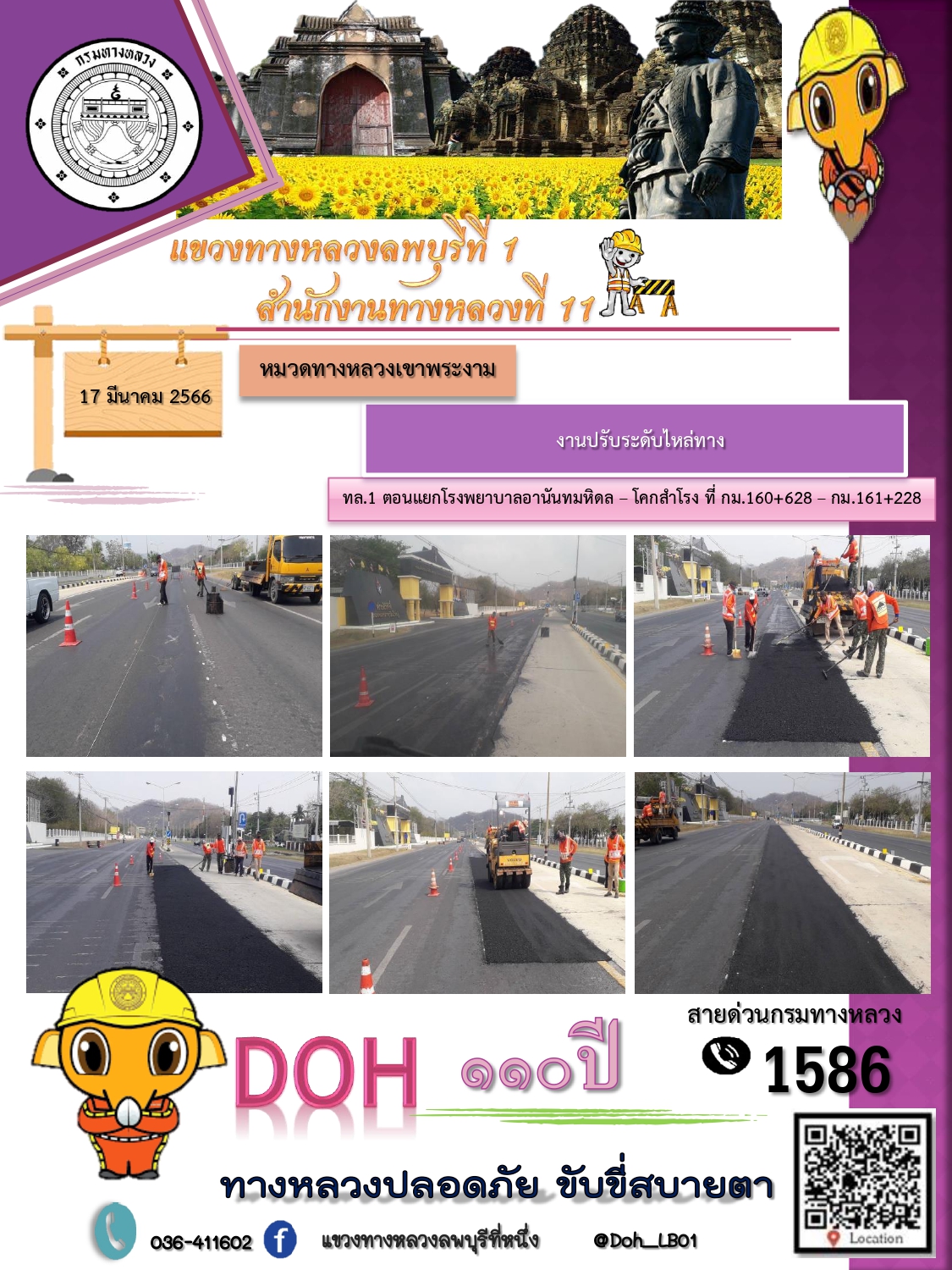 ทางหลวงปลอดภัยขับขี่สบายตา แขวงทางหลวงลพบุรีที่ 1 ประจำวันที่ 1 มีนาคม 2566