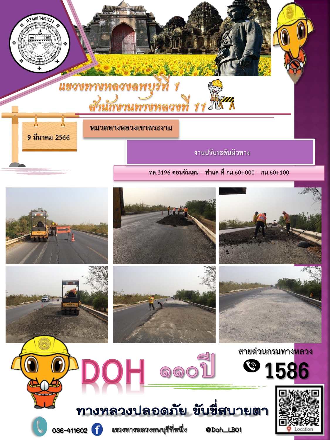 ทางหลวงปลอดภัยขับขี่สบายตา แขวงทางหลวงลพบุรีที่ 1 ประจำวันที่ 9 มีนาคม 2566