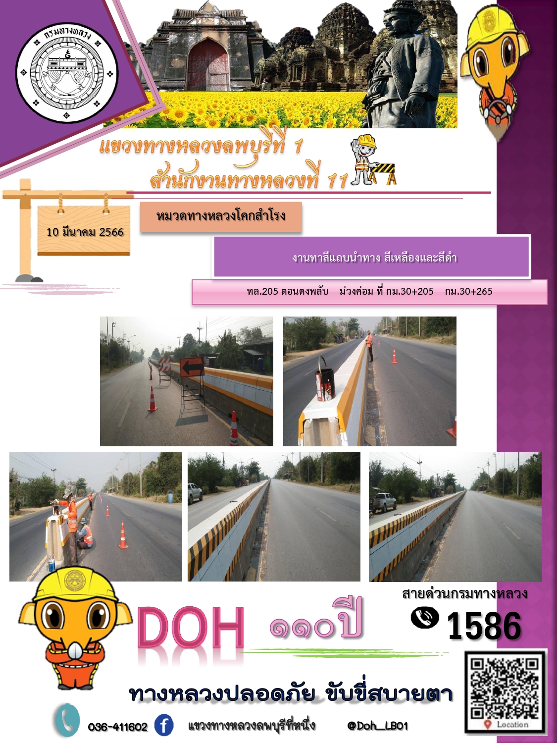 ทางหลวงปลอดภัยขับขี่สบายตา แขวงทางหลวงลพบุรีที่ 1 ประจำวันที่ 10 มีนาคม 2566