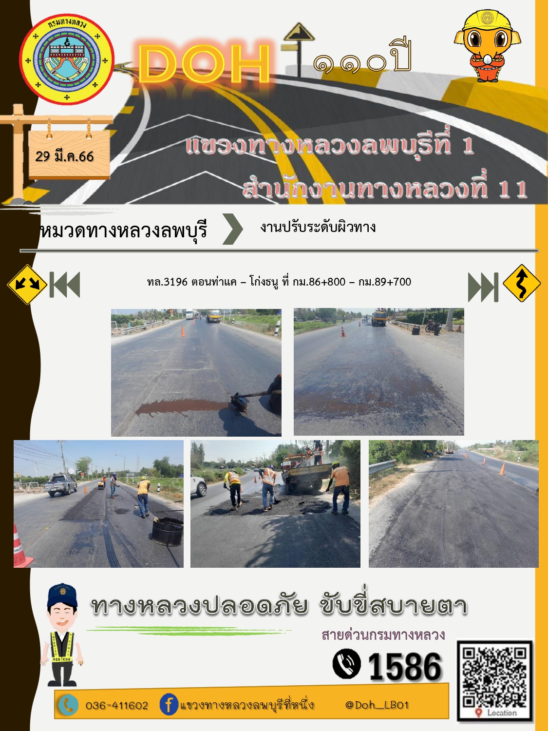ทางหลวงปลอดภัยขับขี่สบายตา แขวงทางหลวงลพบุรีที่ 1 ประจำวันที่ 29 มีนาคม 2566
