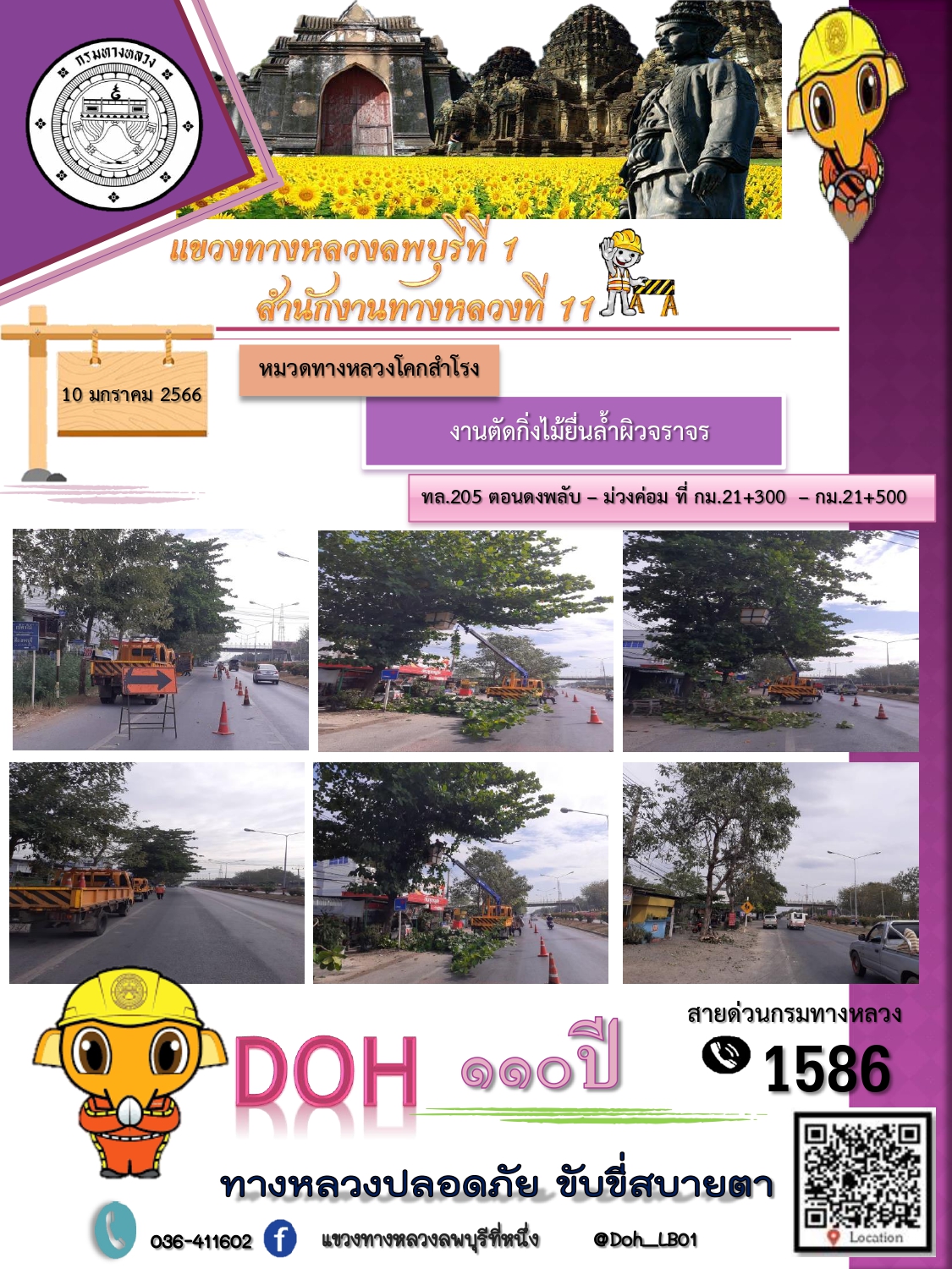 ทางหลวงปลอดภัยขับขี่สบายตา แขวงทางหลวงลพบุรีที่ 1 ประจำวันที่ 10 มกราคม 2566