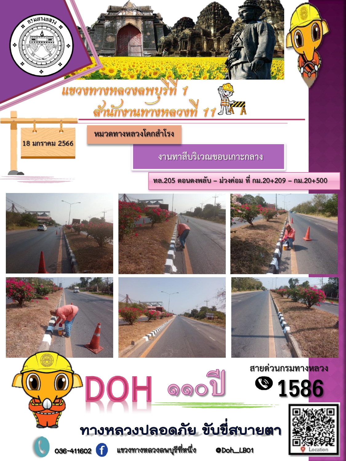 ทางหลวงปลอดภัยขับขี่สบายตา แขวงทางหลวงลพบุรีที่ 1 ประจำวันที่ 18 มกราคม 2566