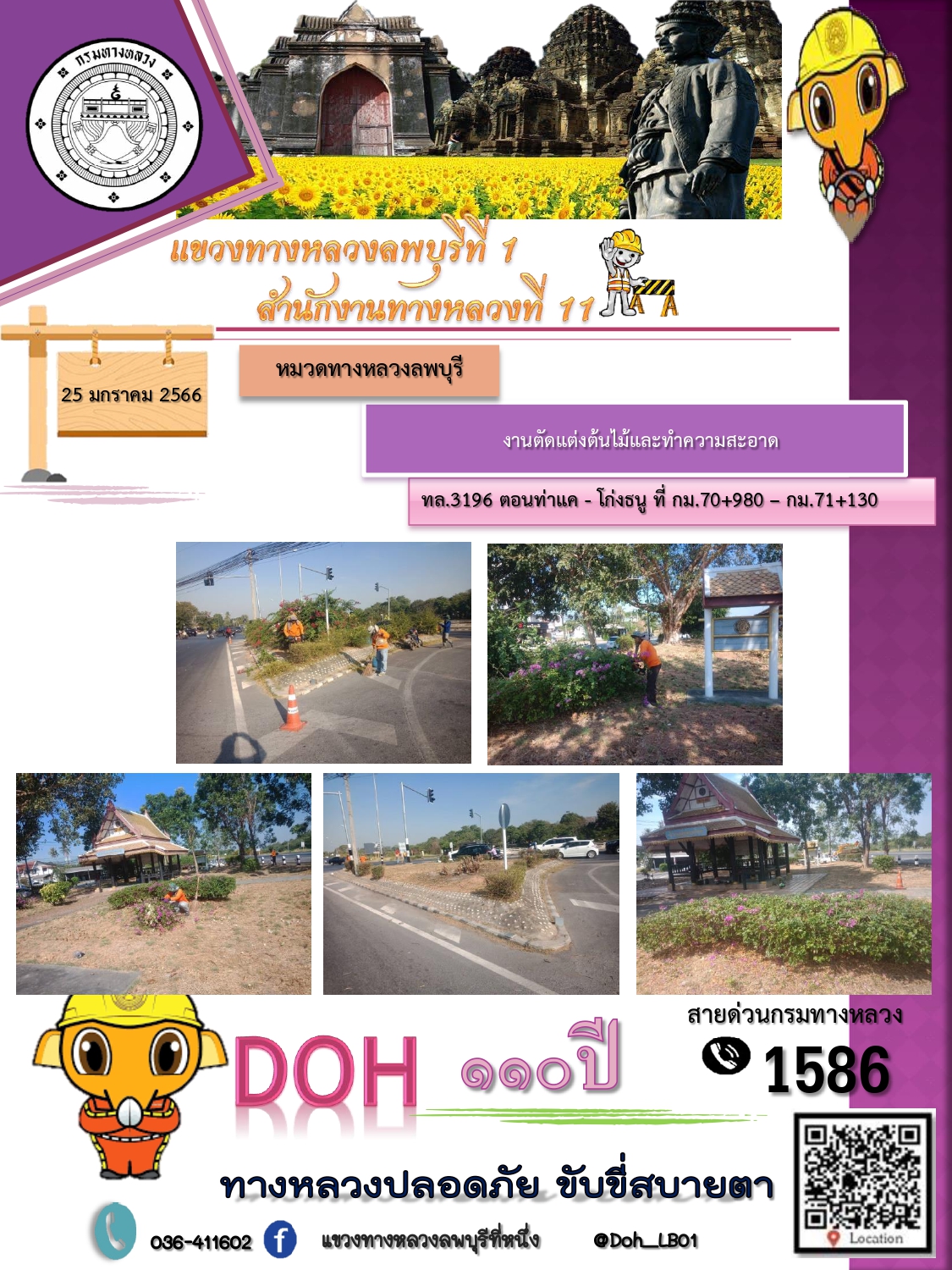 ทางหลวงปลอดภัยขับขี่สบายตา แขวงทางหลวงลพบุรีที่ 1 ประจำวันที่ 25 มกราคม 2566