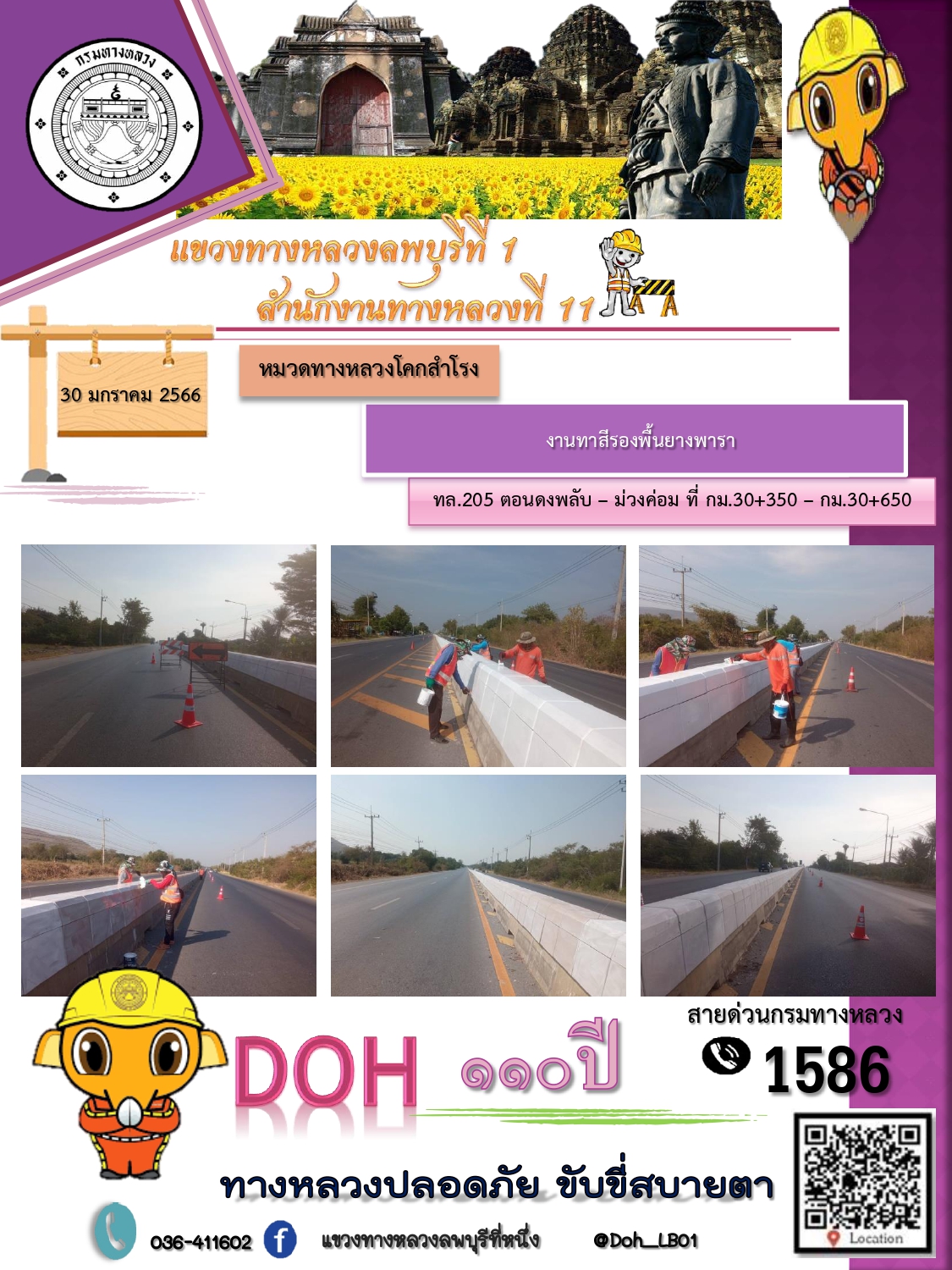 ทางหลวงปลอดภัยขับขี่สบายตา แขวงทางหลวงลพบุรีที่ 1 ประจำวันที่ 30 มกราคม 2566