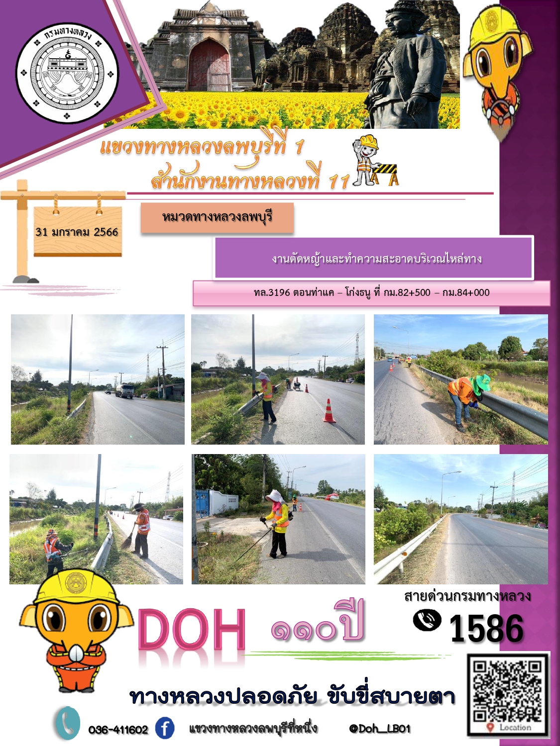 ทางหลวงปลอดภัยขับขี่สบายตา แขวงทางหลวงลพบุรีที่ 1 ประจำวันที่ 31 มกราคม 2566