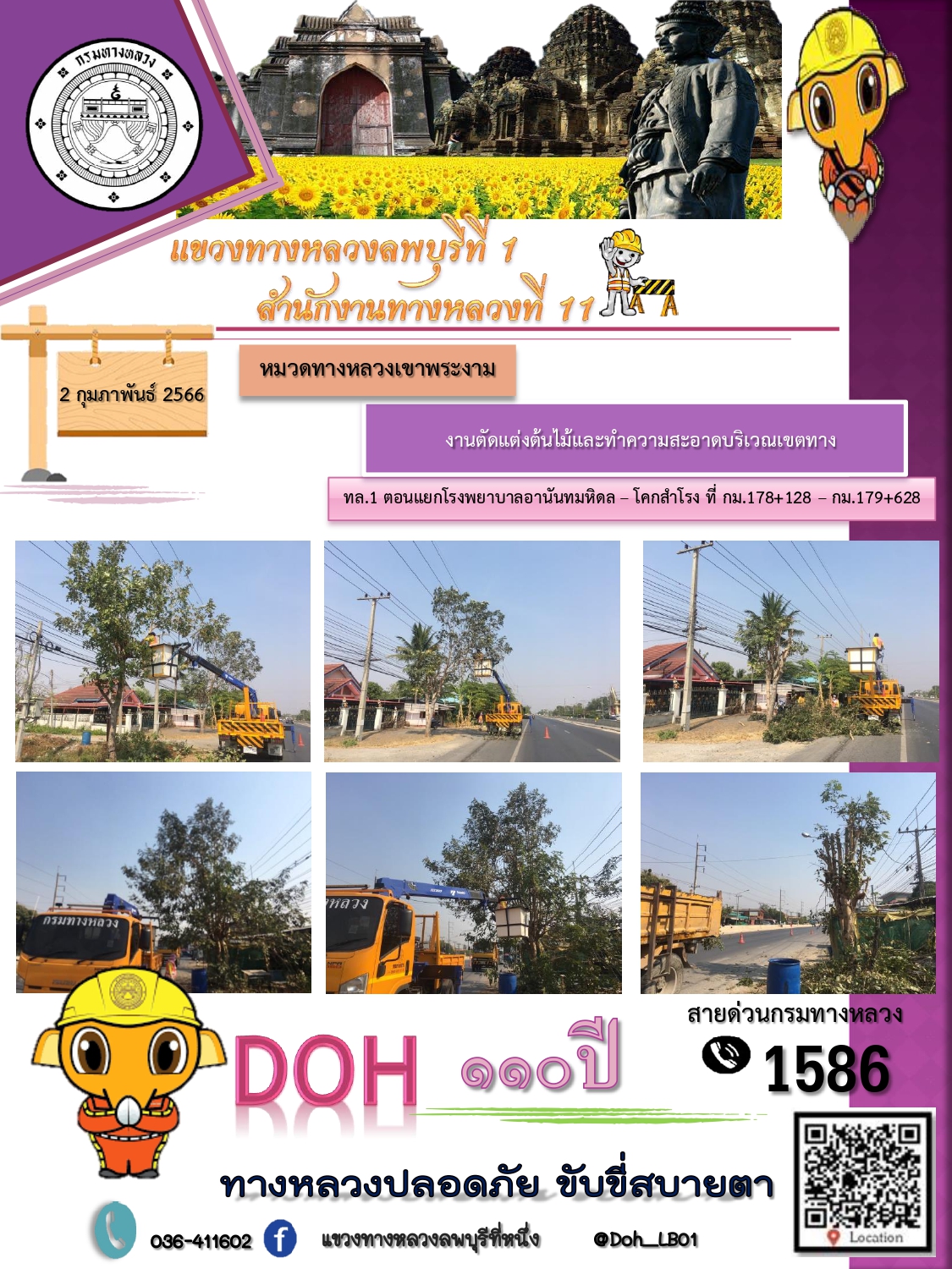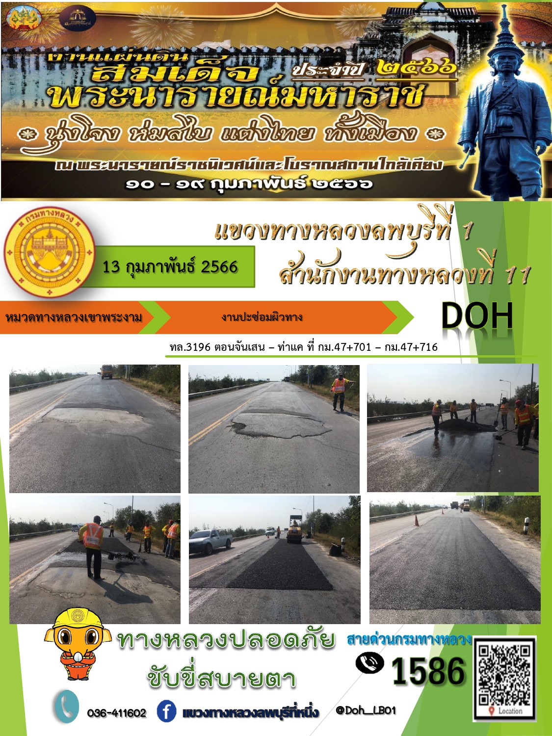 ทางหลวงปลอดภัยขับขี่สบายตา แขวงทางหลวงลพบุรีที่ 1 ประจำวันที่ 13 กุมภาพันธ์ 2566