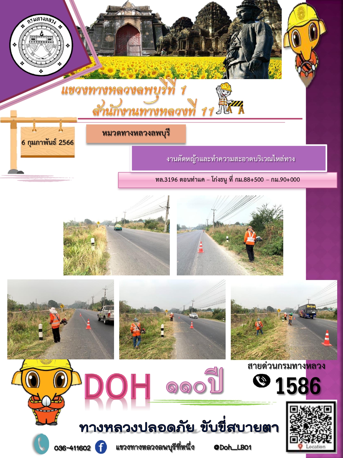 ทางหลวงปลอดภัยขับขี่สบายตา แขวงทางหลวงลพบุรีที่ 1 ประจำวันที่ 6 กุมภาพันธ์ 2566
