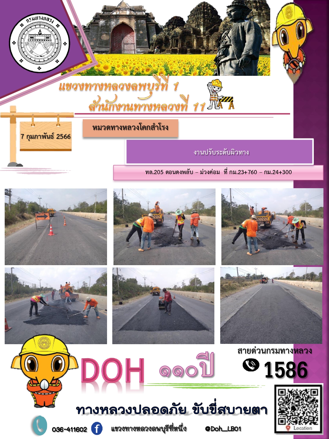 ทางหลวงปลอดภัยขับขี่สบายตา แขวงทางหลวงลพบุรีที่ 1 ประจำวันที่ 7 กุมภาพันธ์ 2566