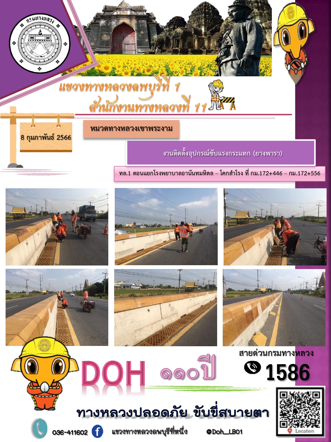 ทางหลวงปลอดภัยขับขี่สบายตา แขวงทางหลวงลพบุรีที่ 1 ประจำวันที่ 8 กุมภาพันธ์ 2566