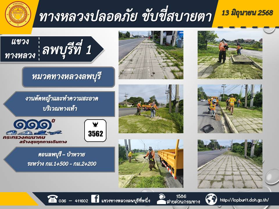 ทางหลวงปลอดภัยขับขี่สบายตา แขวงทางหลวงลพบุรีที่ 1 ประจำวันที่ 13 มิถุนายน 2568