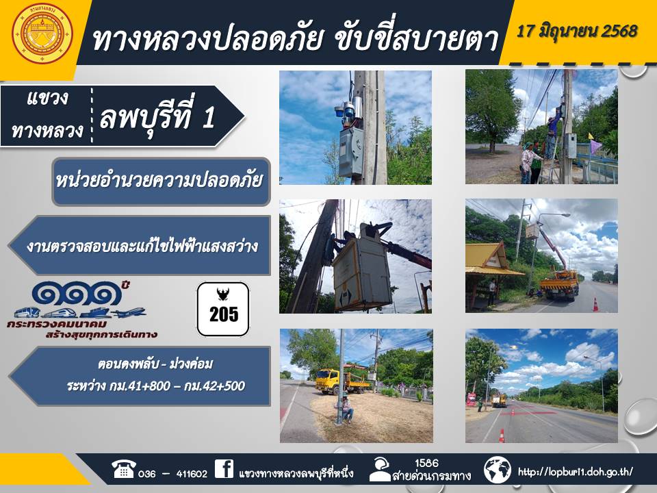 ทางหลวงปลอดภัยขับขี่สบายตา แขวงทางหลวงลพบุรีที่ 1 ประจำวันที่ 17 มิถุนายน 2568