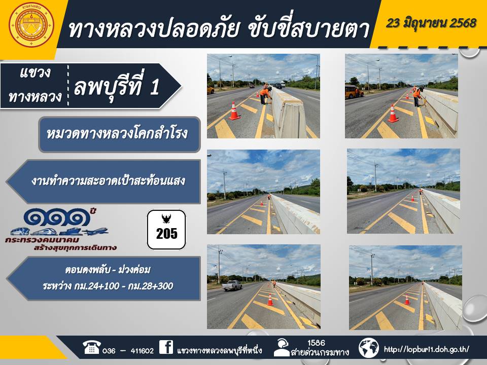 ทางหลวงปลอดภัยขับขี่สบายตา แขวงทางหลวงลพบุรีที่ 1 ประจำวันที่ 23 มิถุนายน 2568