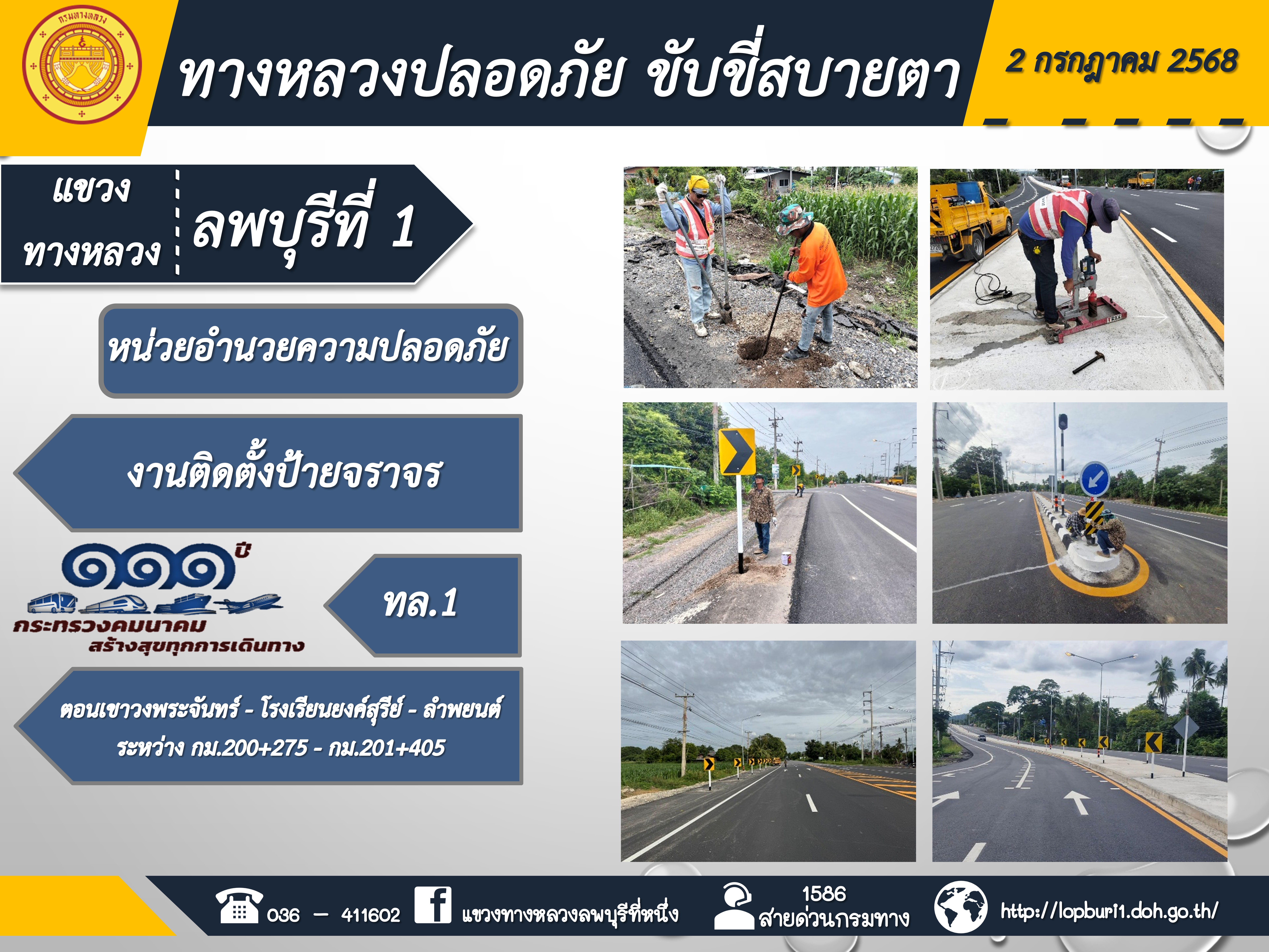 ทางหลวงปลอดภัยขับขี่สบายตา แขวงทางหลวงลพบุรีที่ 1 ประจำวันที่ 1 กรกฎาคม 2568