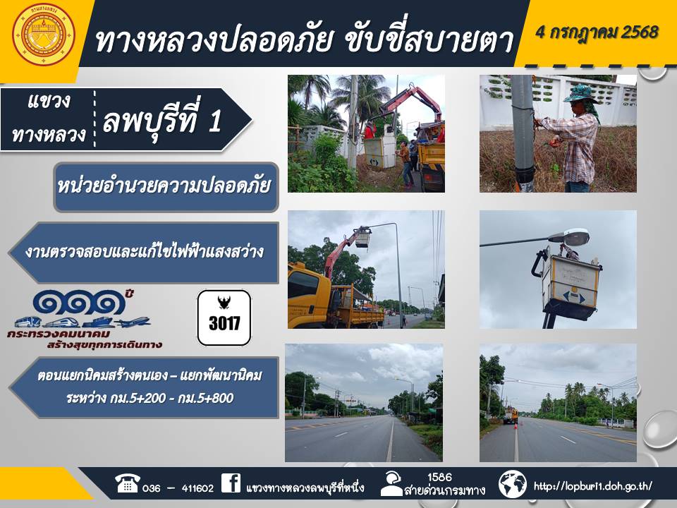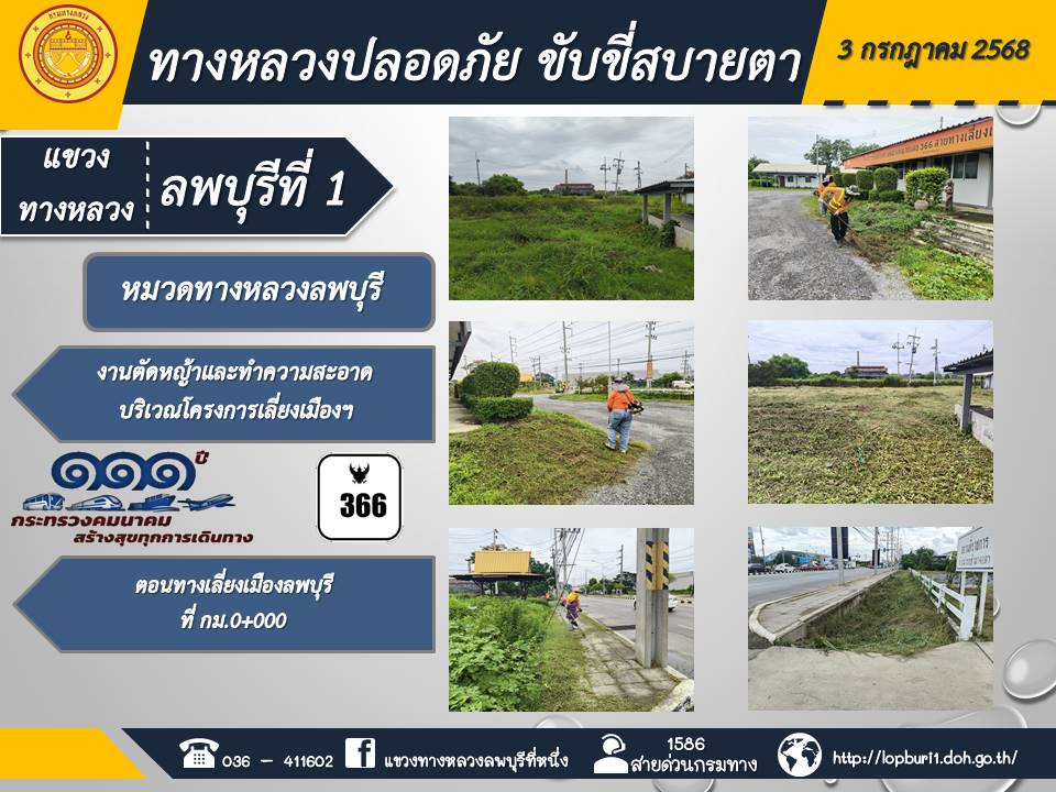 ทางหลวงปลอดภัยขับขี่สบายตา แขวงทางหลวงลพบุรีที่ 1 ประจำวันที่ 3 กรกฎาคม 2568