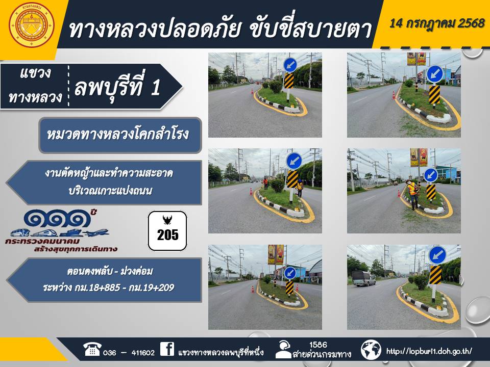 ทางหลวงปลอดภัยขับขี่สบายตา แขวงทางหลวงลพบุรีที่ 1 ประจำวันที่ 14 กรกฎาคม 2568