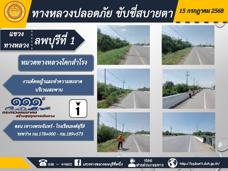 ทางหลวงปลอดภัยขับขี่สบายตา แขวงทางหลวงลพบุรีที่ 1 ประจำวันที่ 15 กรกฎาคม 2568