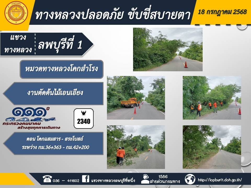 ทางหลวงปลอดภัยขับขี่สบายตา แขวงทางหลวงลพบุรีที่ 1 ประจำวันที่ 18 กรกฎาคม 2568