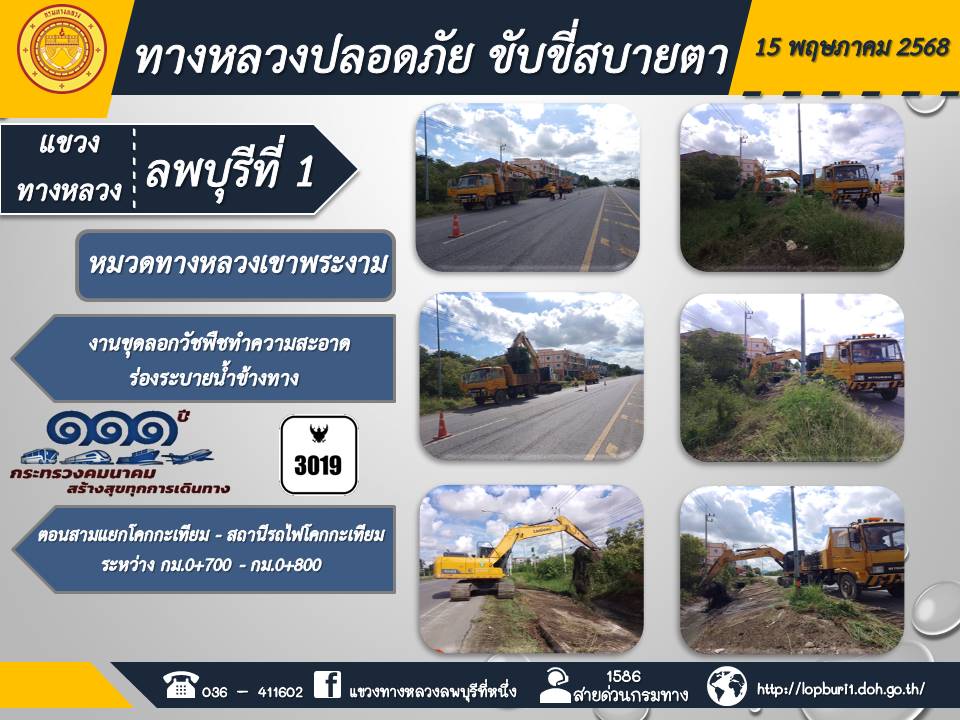 ทางหลวงปลอดภัยขับขี่สบายตา แขวงทางหลวงลพบุรีที่ 1 ประจำวันที่ 15 พฤษภาคม 2568