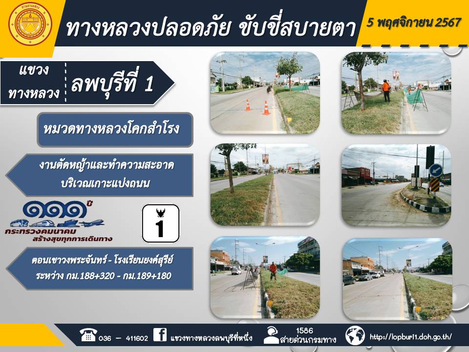 ทางหลวงปลอดภัยขับขี่สบายตา แขวงทางหลวงลพบุรีที่ 1 ประจำวันที่ 5 พฤศจิกายน 2567