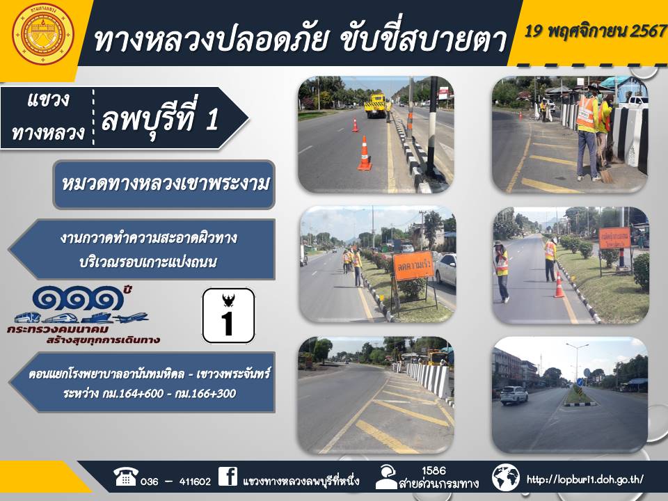 ทางหลวงปลอดภัยขับขี่สบายตา แขวงทางหลวงลพบุรีที่ 1 ประจำวันที่ 19 พฤศจิกายน 2567