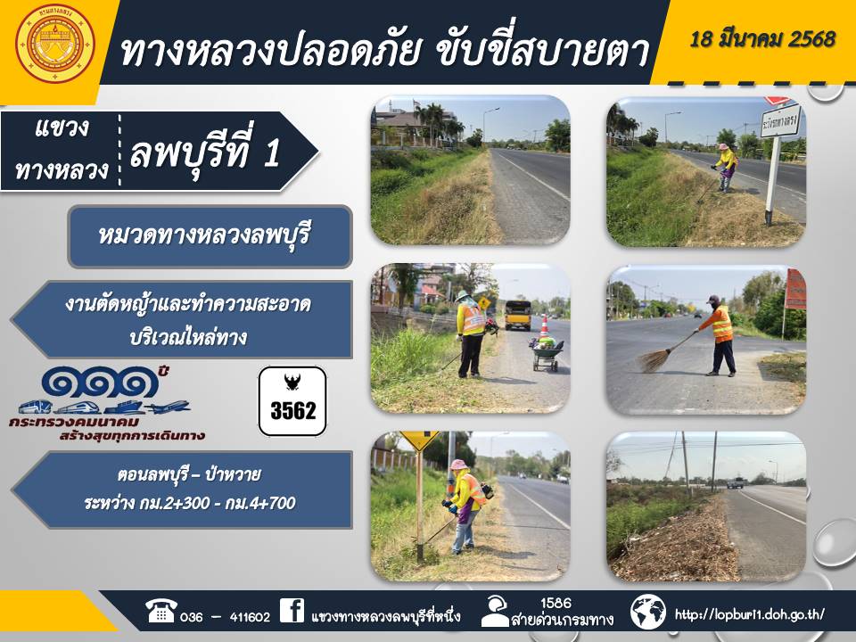 ทางหลวงปลอดภัยขับขี่สบายตา แขวงทางหลวงลพบุรีที่ 1 ประจำวันที่ 18 มีนาคม 2568