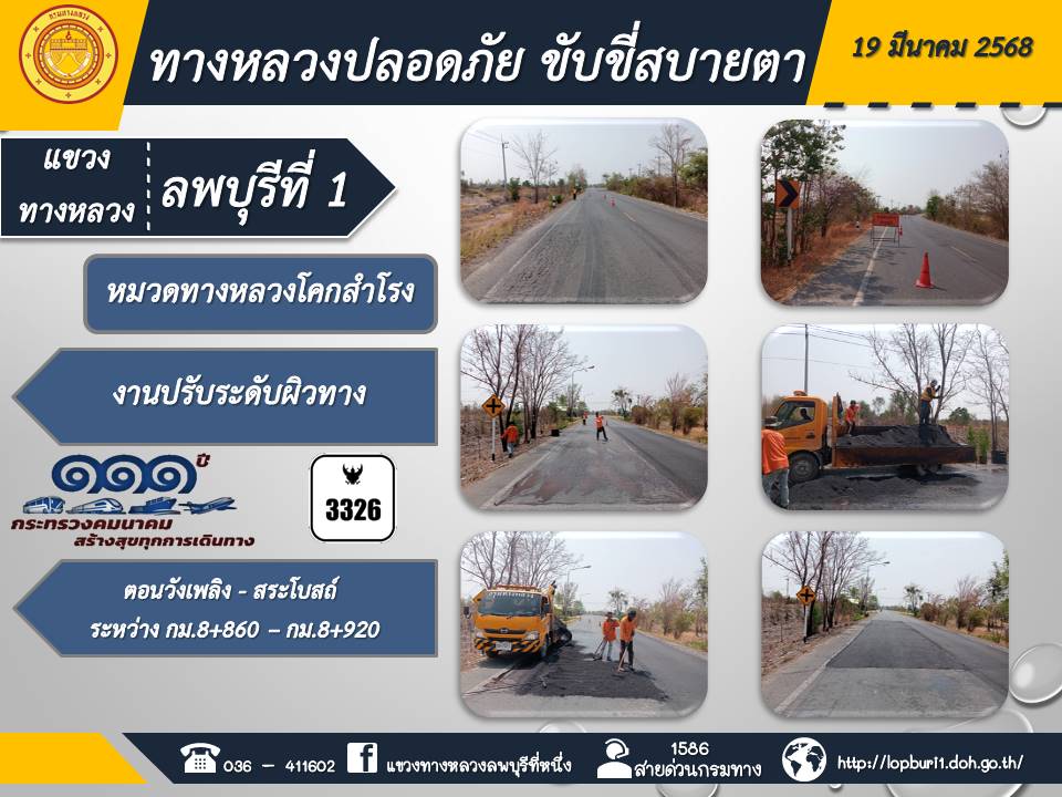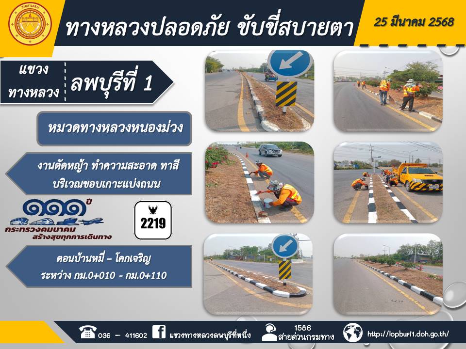 ทางหลวงปลอดภัยขับขี่สบายตา แขวงทางหลวงลพบุรีที่ 1 ประจำวันที่ 19 มีนาคม 2568