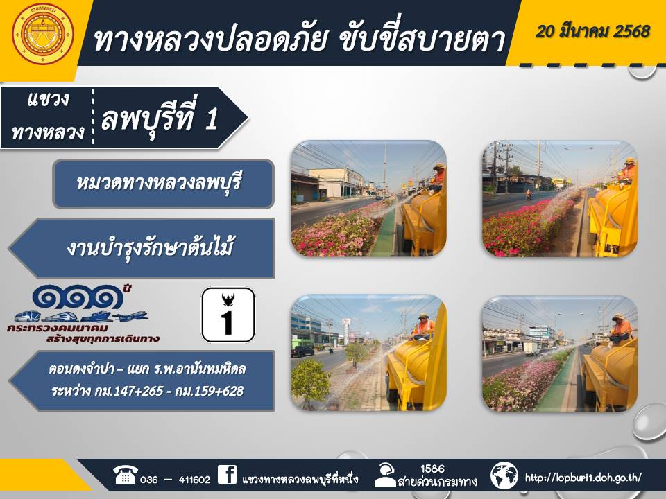 ทางหลวงปลอดภัยขับขี่สบายตา แขวงทางหลวงลพบุรีที่ 1 ประจำวันที่ 20 มีนาคม 2568