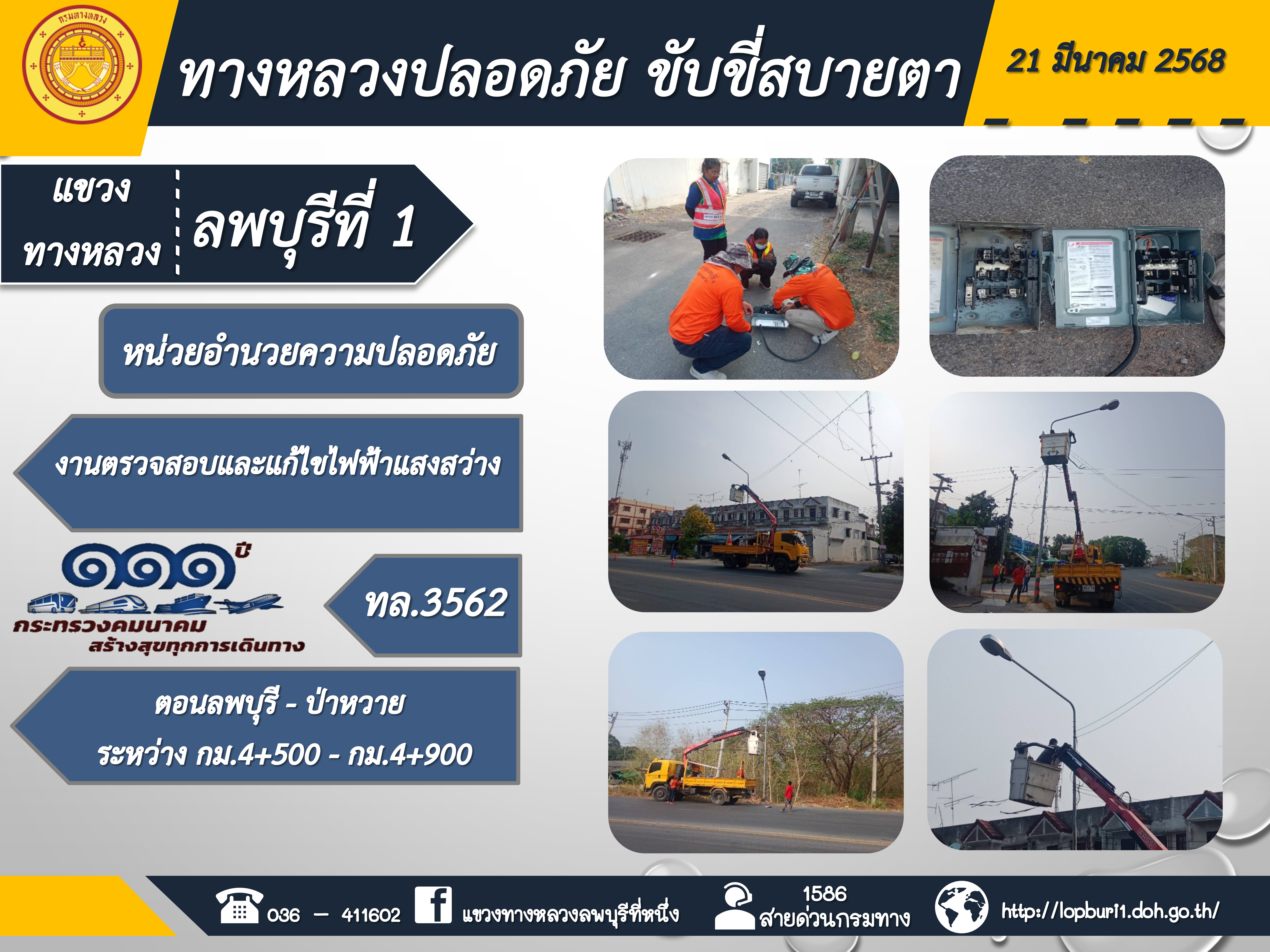 ทางหลวงปลอดภัยขับขี่สบายตา แขวงทางหลวงลพบุรีที่ 1 ประจำวันที่ 21 มีนาคม 2568