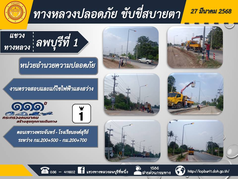 ทางหลวงปลอดภัยขับขี่สบายตา แขวงทางหลวงลพบุรีที่ 1 ประจำวันที่ 27 มีนาคม 2568