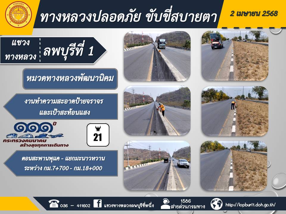ทางหลวงปลอดภัยขับขี่สบายตา แขวงทางหลวงลพบุรีที่ 1 ประจำวันที่ 2 เมษายน 2568