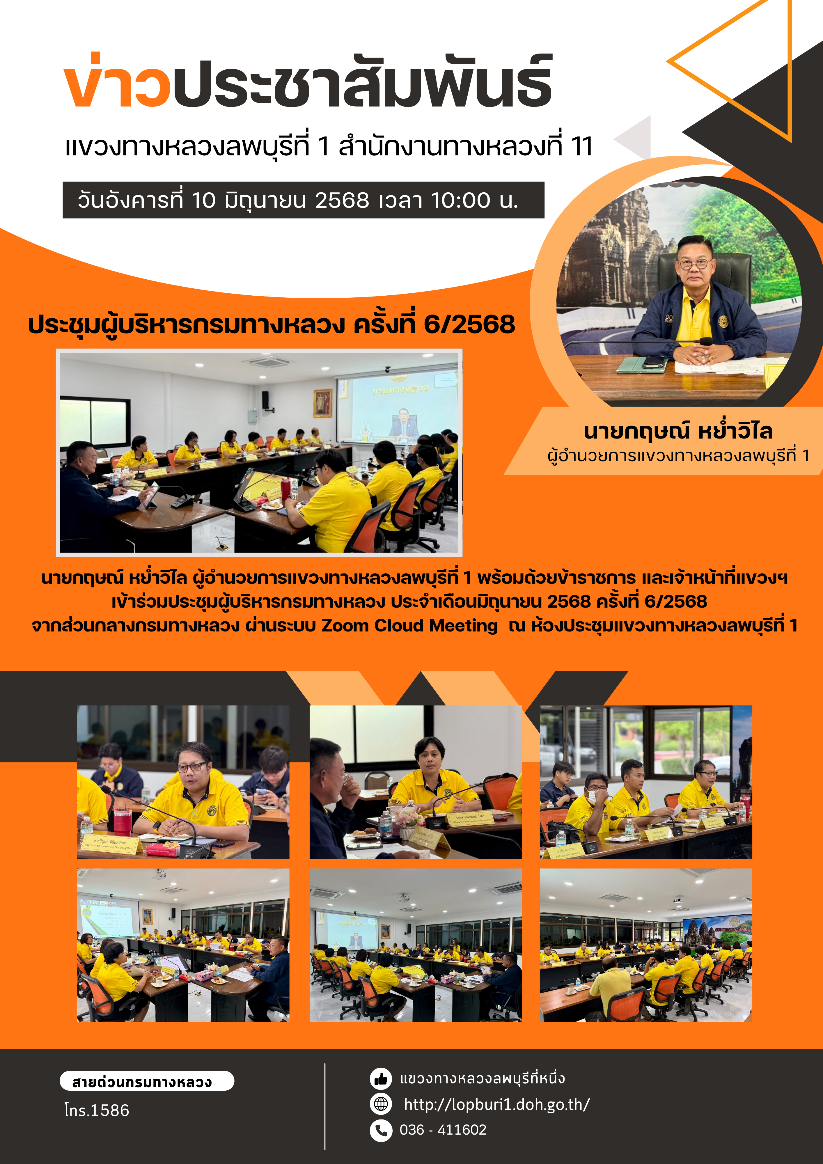 ประชุมผู้บริหารกรมทางหลวง ประจำเดือนมิถุนายน 2568 ครั้งที่ 6/2568
