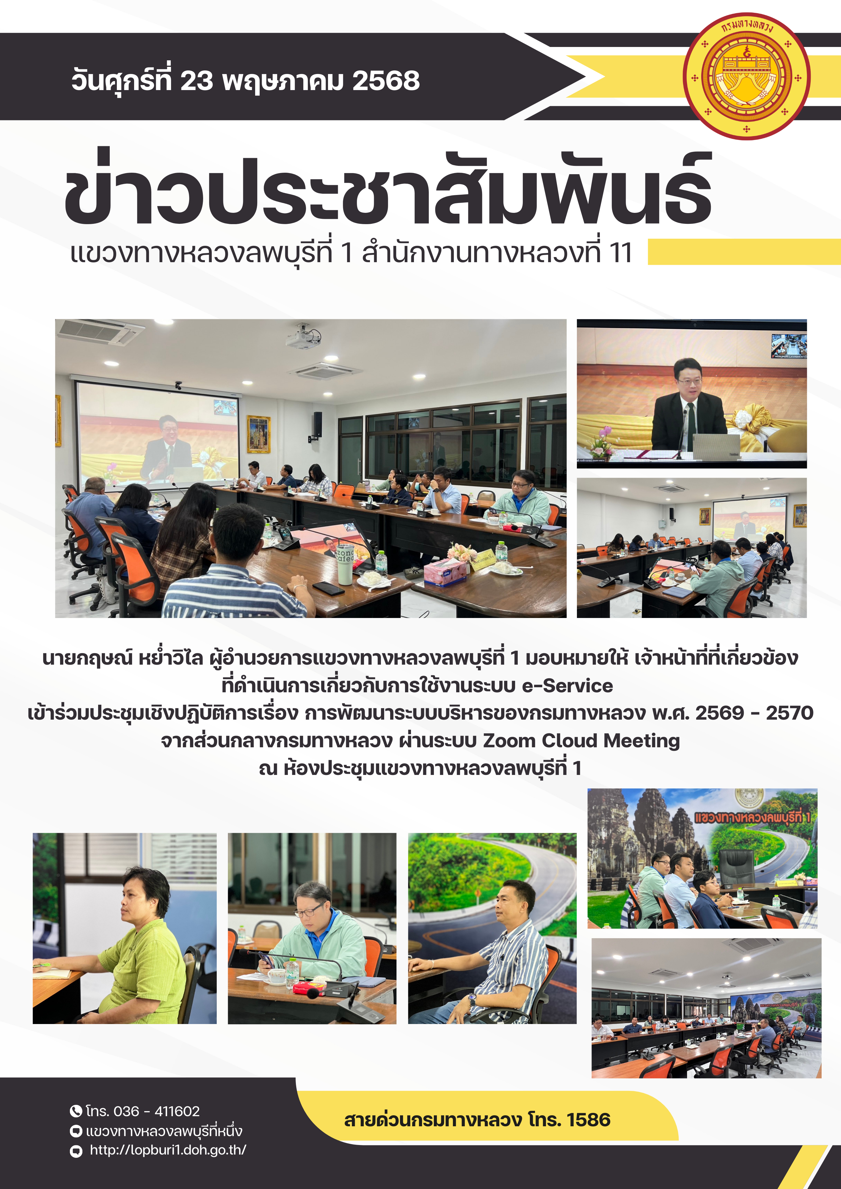 155 15/05/2568 เข้าร่วมประชุม คณะอนุกรรมการพิจารณาการขอรับจัดสรรเงินกองทุนเพื่อความปลอดภัยในการใช้รถใช้ถนนประจำจังหวัดลพบุรี