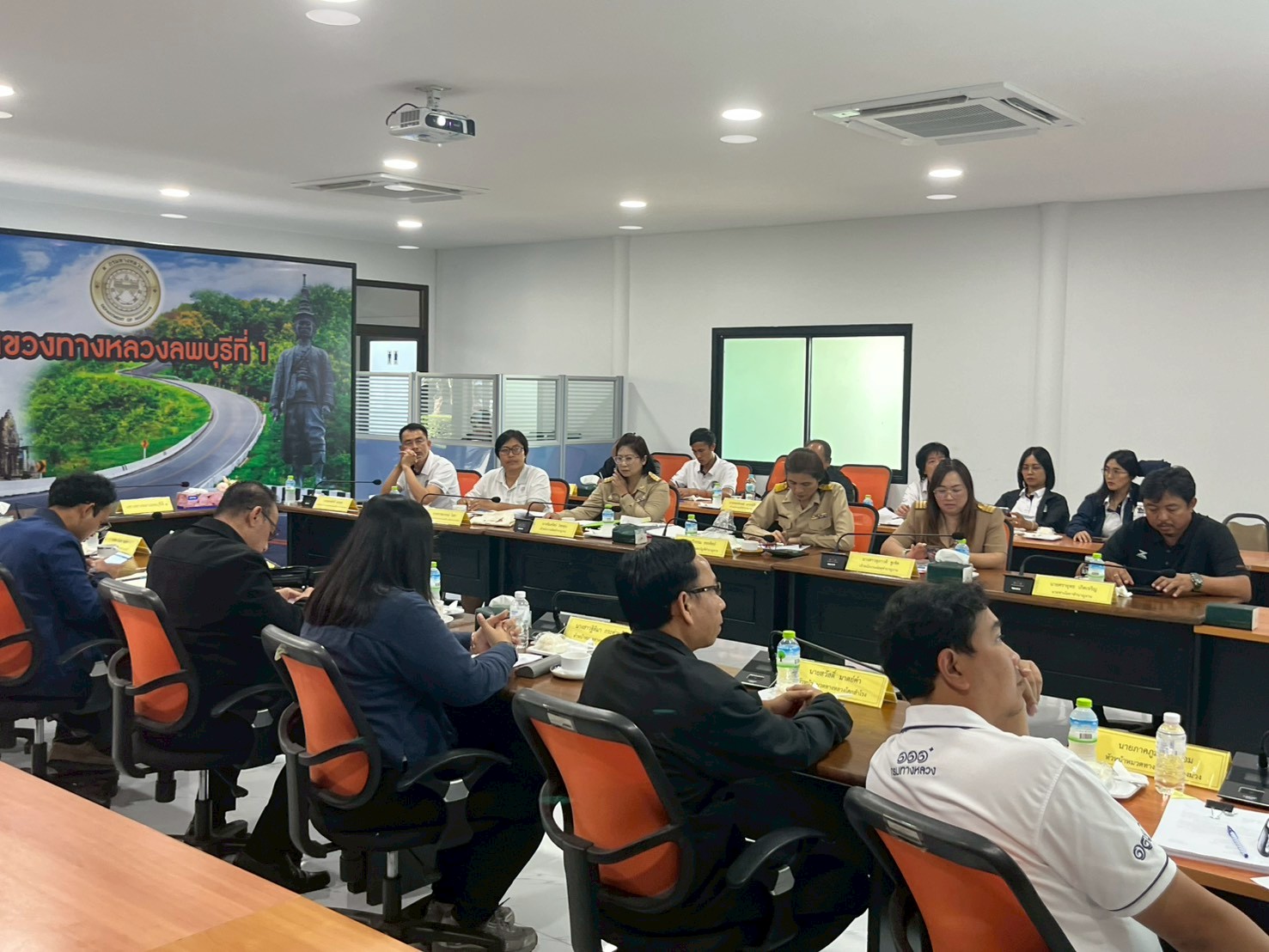นายนิพันธ์ ใหญ่อรุณ รองผู้อำนวยการสำนักงานทางหลวงที่ 11 (ตำแหน่งที่ 1) พร้อมด้วย นายศรัณย์รัฐ พวงพัฒน์ รองผู้อำนวยการสำนักงานทางหลวงที่ 11 (ตำแหน่งที่ 2) และคณะเจ้าหน้าที่สำนักงานทางหลวงที่ 11 (ลพบุรี) เดินทางมาเพื่อชี้แจงแนวทางการควบคุมงานก่อสร้างและการบริหารงานสัญญาประจำปีงบประมาณ พ.ศ. 2569