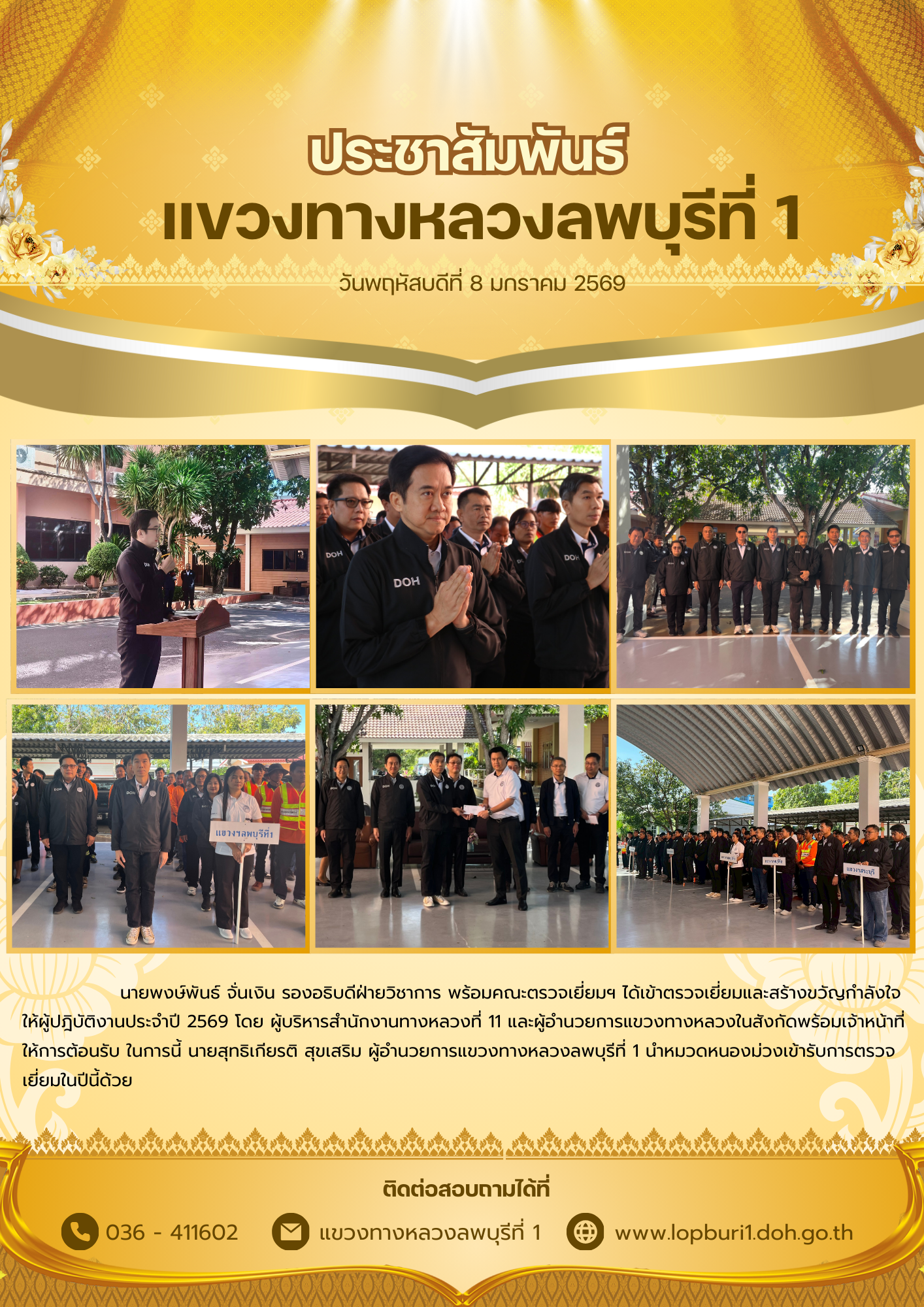คณะผู้บริหาร ข้าราชการและเจ้าหน้าที่ในสังกัด แขวงทางหลวงลพบุรีที่ 1 ได้ร่วมสวัสดีปีใหม่ และขอรับพรปีใหม่จาก นายสุทธิเกียรติ สุขเสริม ผู้อำนวยแขวงทางหลวงลพบุรีที่ 1