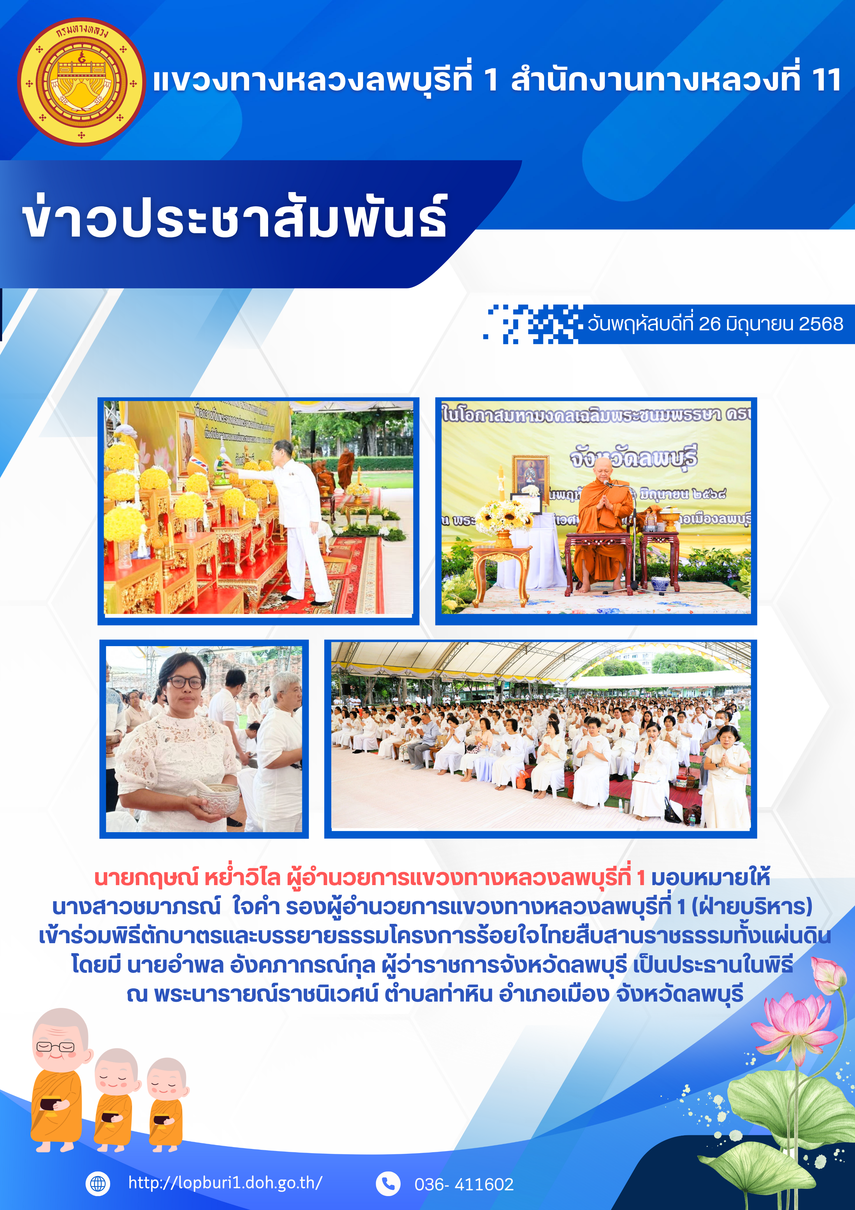 เข้าร่วมพิธีตักบาตรและบรรยายธรรมโครงการร้อยใจไทยสืบสานราชธรรมทั้งแผ่นดิน