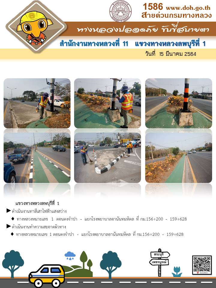 ข้อมูลภาพกิจกรรม : รายงานประจำวันที่ 15 มีนาคม 2564 ทางหลวงปลอดภัย ขับขี่สบายตา