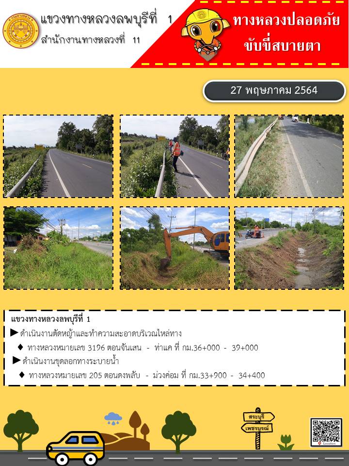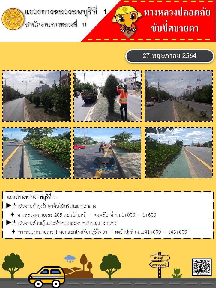 ข้อมูลภาพกิจกรรม : รายงานประจำวันที่ 27 พฤษภาคม 2564 ทางหลวงปลอดภัย ขับขี่สบายตา