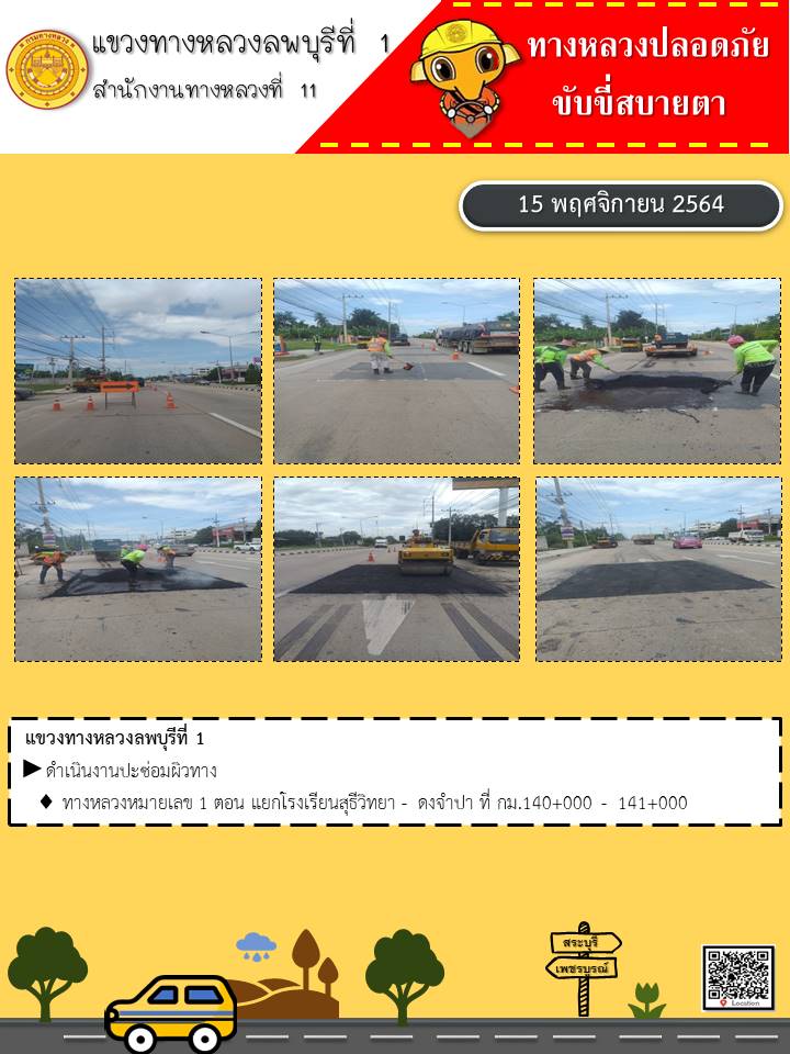 ข้อมูลภาพกิจกรรม : รายงานประจำวันที่ 15 พฤศจิกายน 2564 ทางหลวงปลอดภัย ขับขี่สบายตา