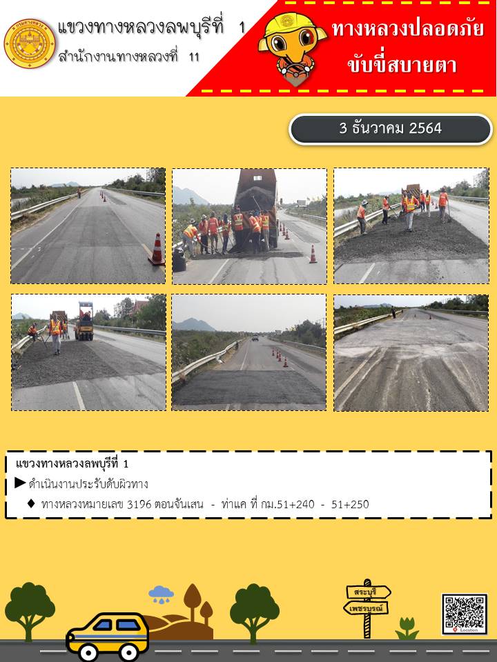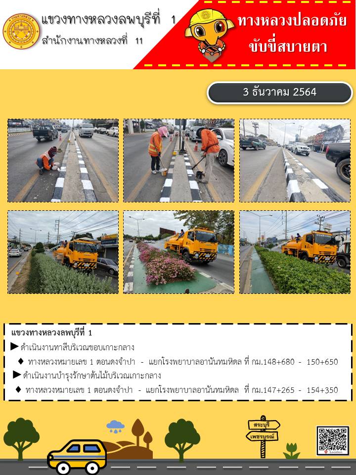 ทางหลวงปลอดภัยขับขี่สบายตา แขวงทางหลวงลพบุรีที่ 1 ประจำวันที่ 3 ธันวาคม 2564