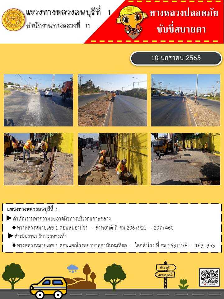 ทางหลวงปลอดภัยขับขี่สบายตา แขวงทางหลวงลพบุรีที่ 1 ประจำวันที่ 10 มกราคม 2565