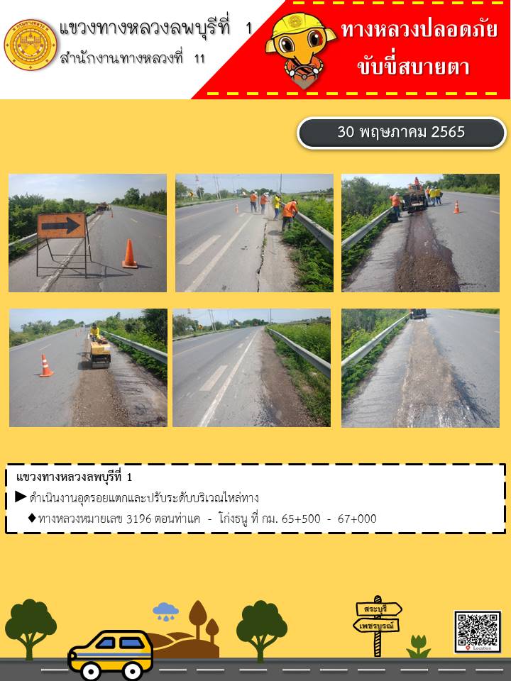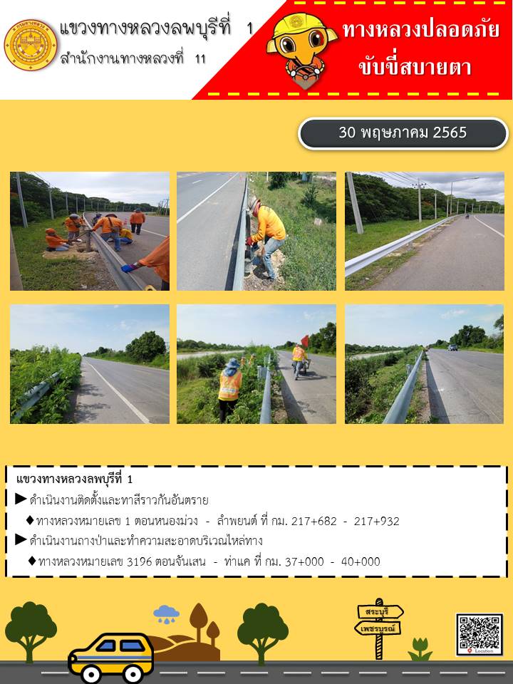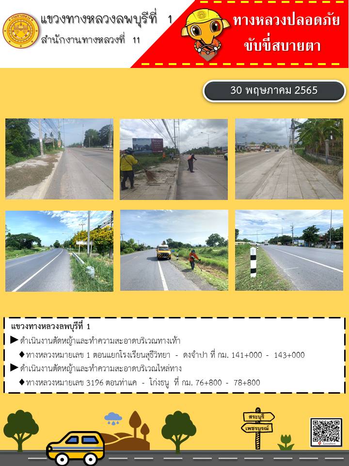 ทางหลวงปลอดภัยขับขี่สบายตา แขวงทางหลวงลพบุรีที่ 1 ประจำวันที่ 30 พฤษภาคม 2565