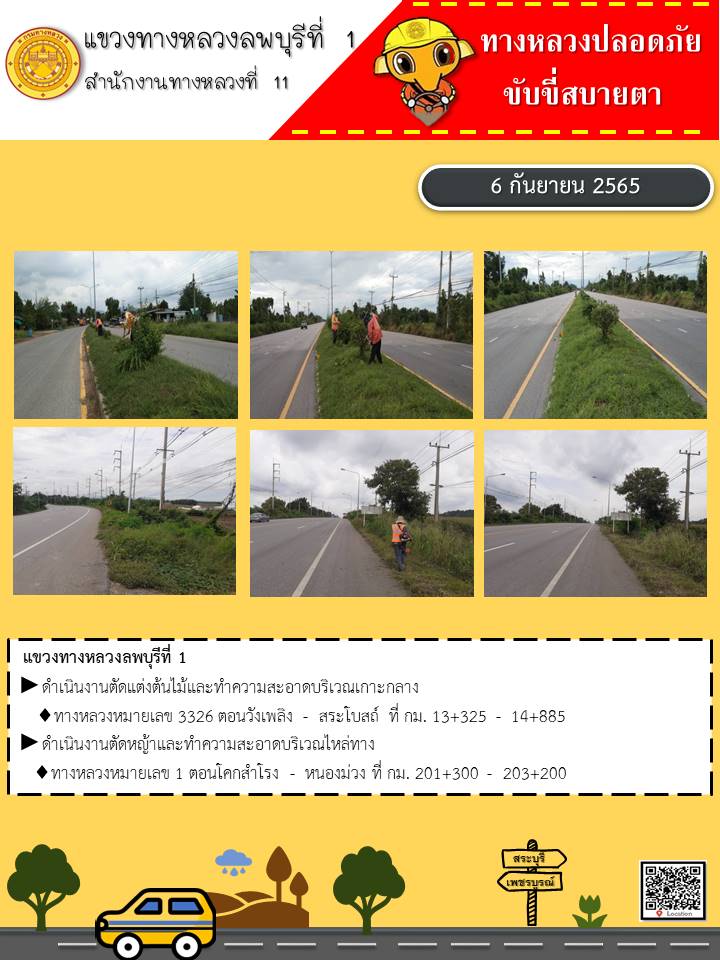 ทางหลวงปลอดภัยขับขี่สบายตา แขวงทางหลวงลพบุรีที่ 1 ประจำวันที่ 6 กันยายน 2565