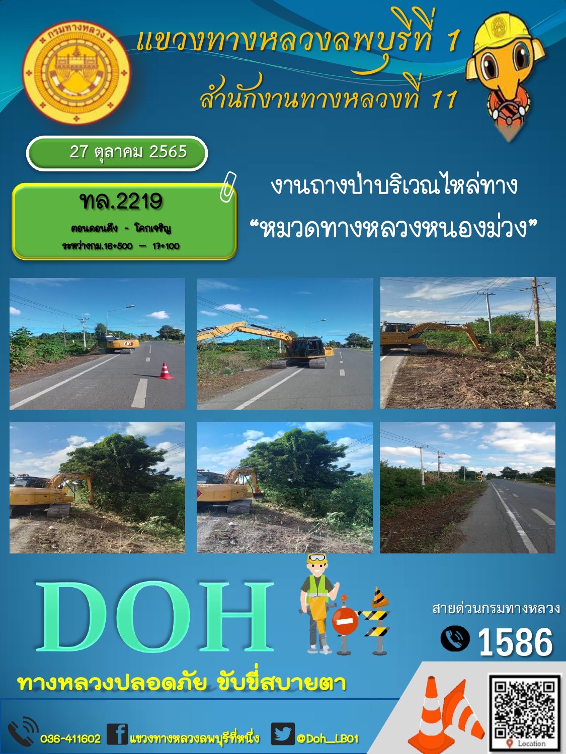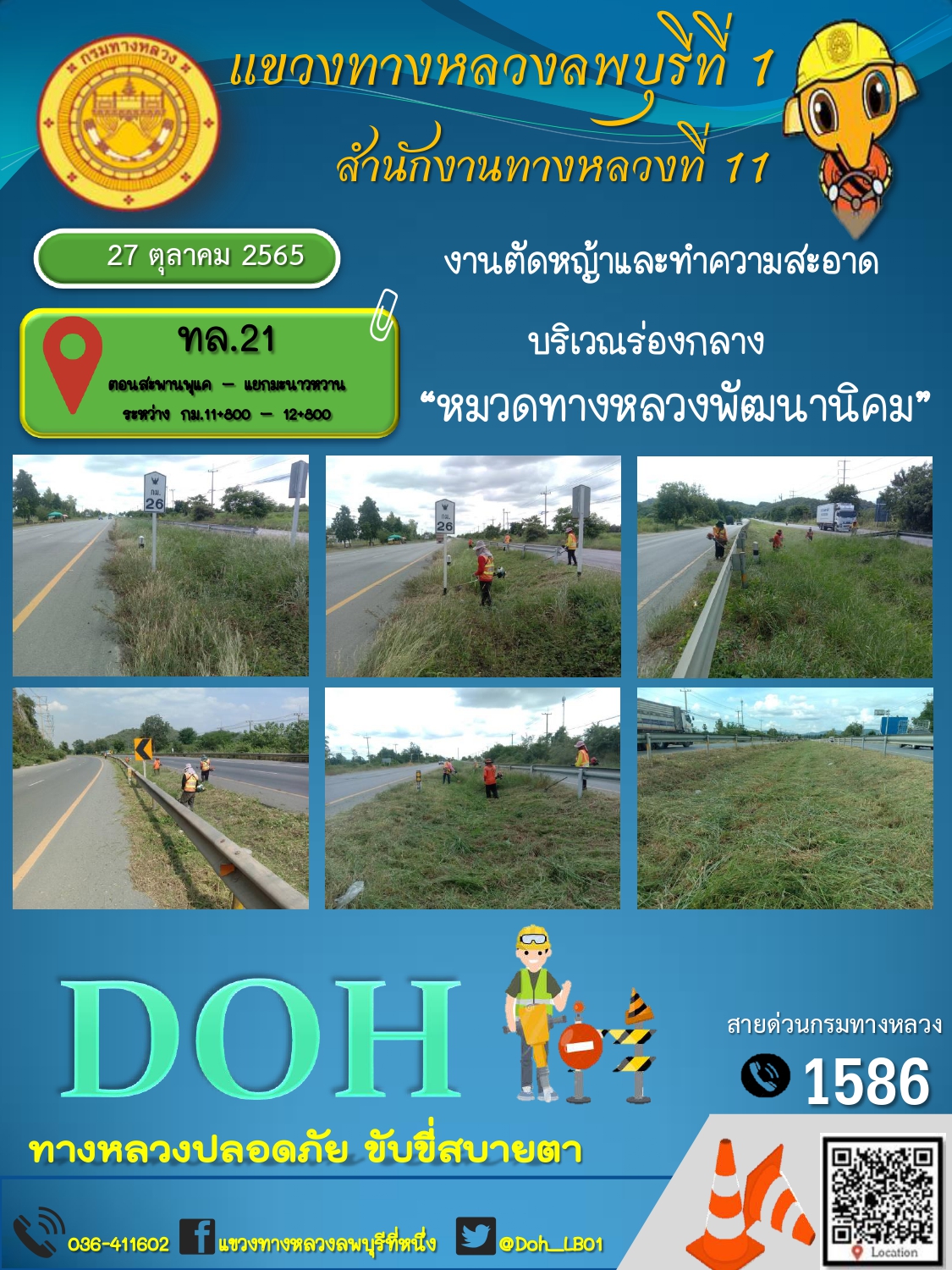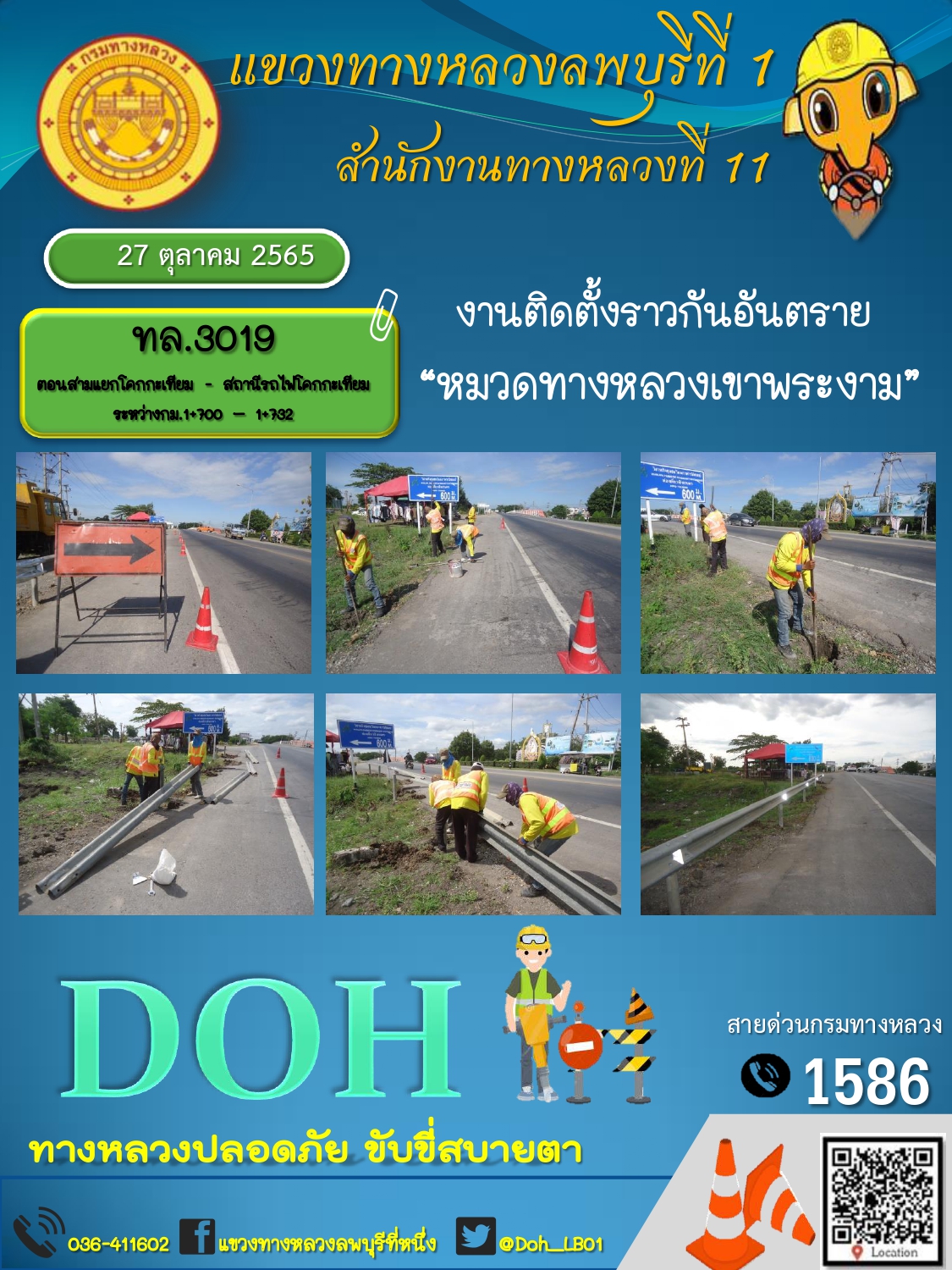 ทางหลวงปลอดภัยขับขี่สบายตา แขวงทางหลวงลพบุรีที่ 1 ประจำวันที่ 27 ตุลาคม 2565