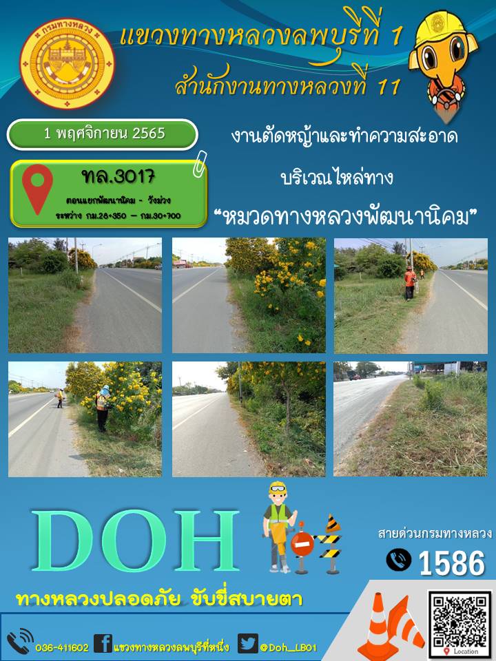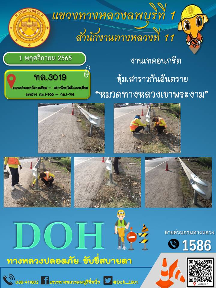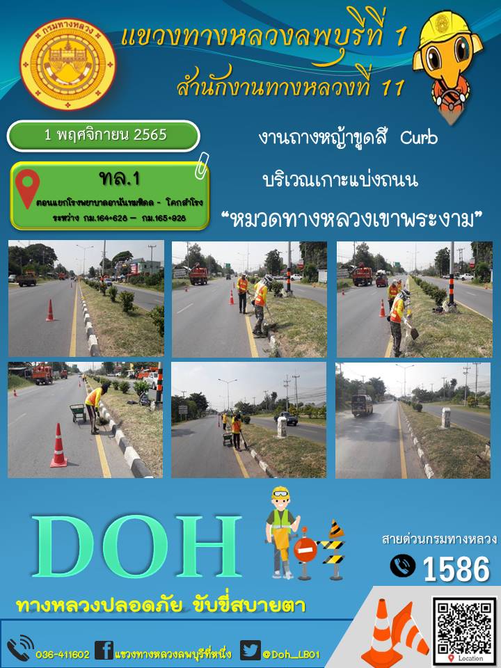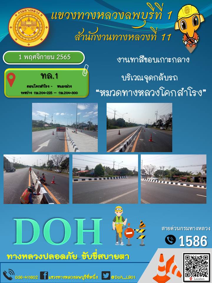 ทางหลวงปลอดภัยขับขี่สบายตา แขวงทางหลวงลพบุรีที่ 1 ประจำวันที่ 1 พฤศจิกายน 2565